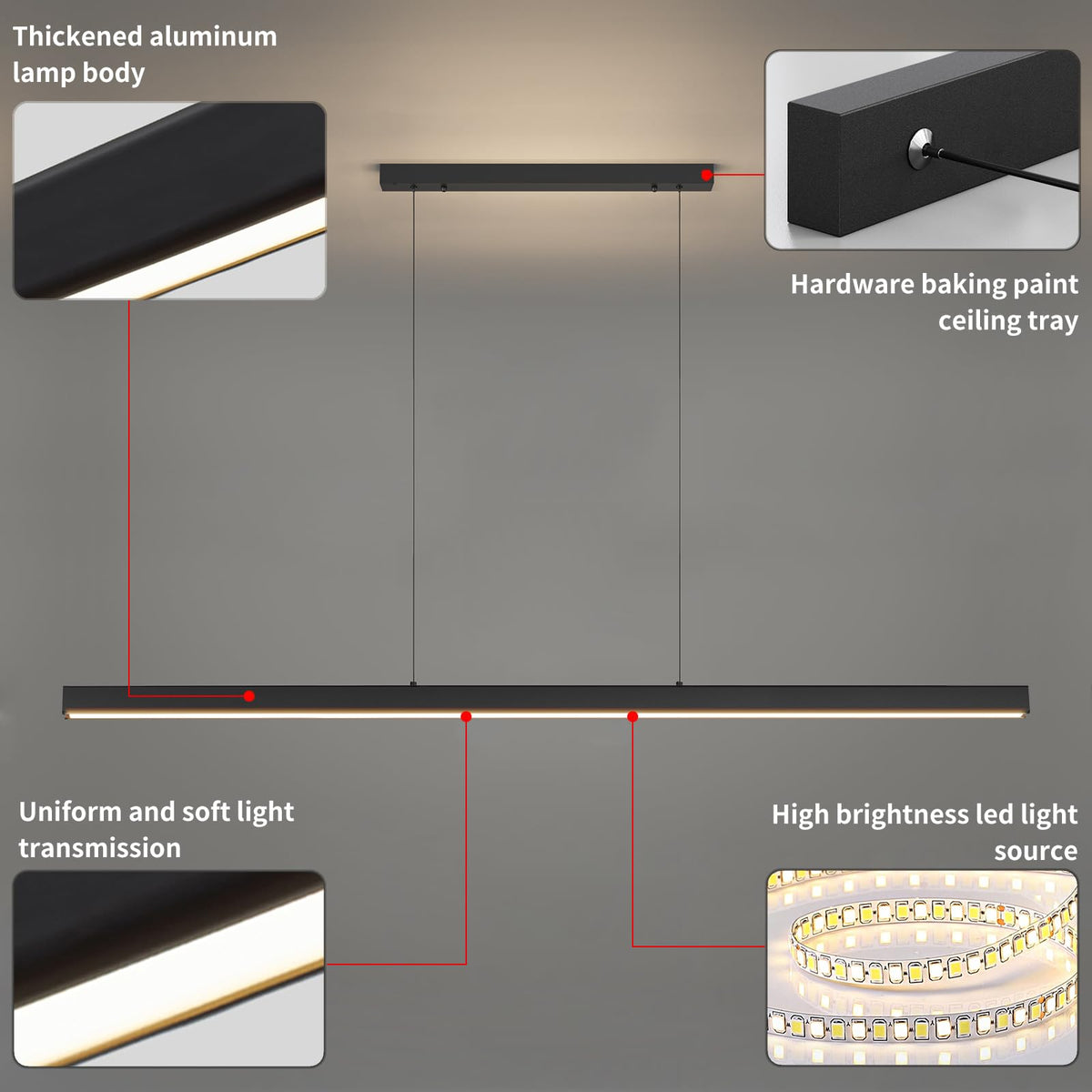 57'' Led Linear Pendant Light Fixtures, 25W Dimmable Pool Table Light With Remote, Modern Island Lights For Kitchen Dining Room