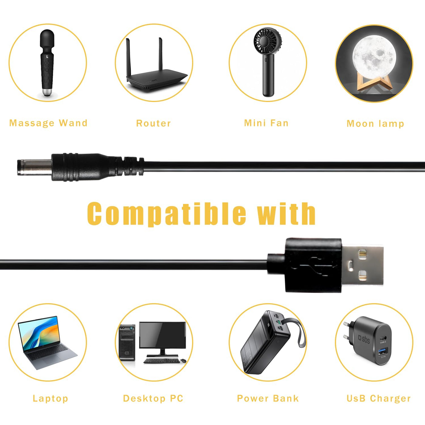 Q: Can I use this charger while traveling?A: Absolutely! The 5V DC Power Cord Charger is lightweight, compact, and portable, making it an ideal choice for travel. It can be used with power banks, car chargers, wall chargers, or computers, allowing you to charge your devices anytime, anywhere.