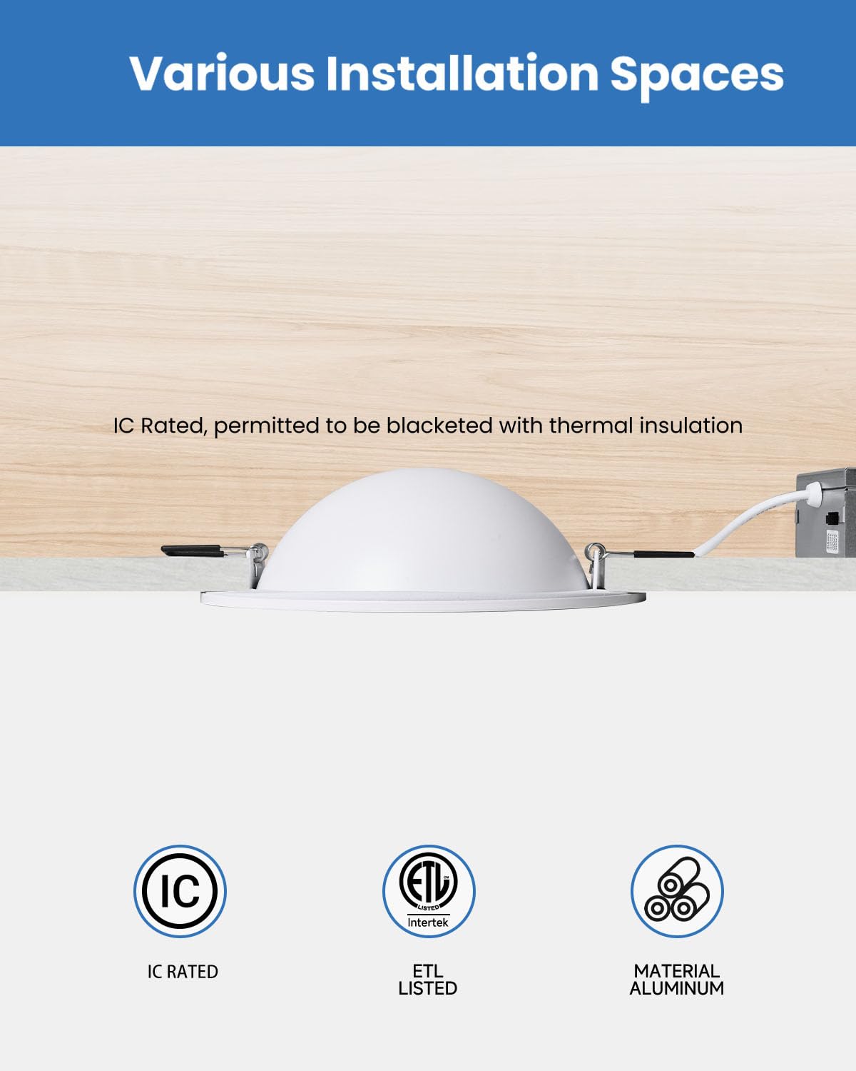 Q: What color temperatures does this LED recessed light offer?A: This LED recessed light offers 5 selectable color temperatures: 2700K, 3000K, 3500K, 4000K, and 5000K, allowing you to choose the perfect ambiance for your space.