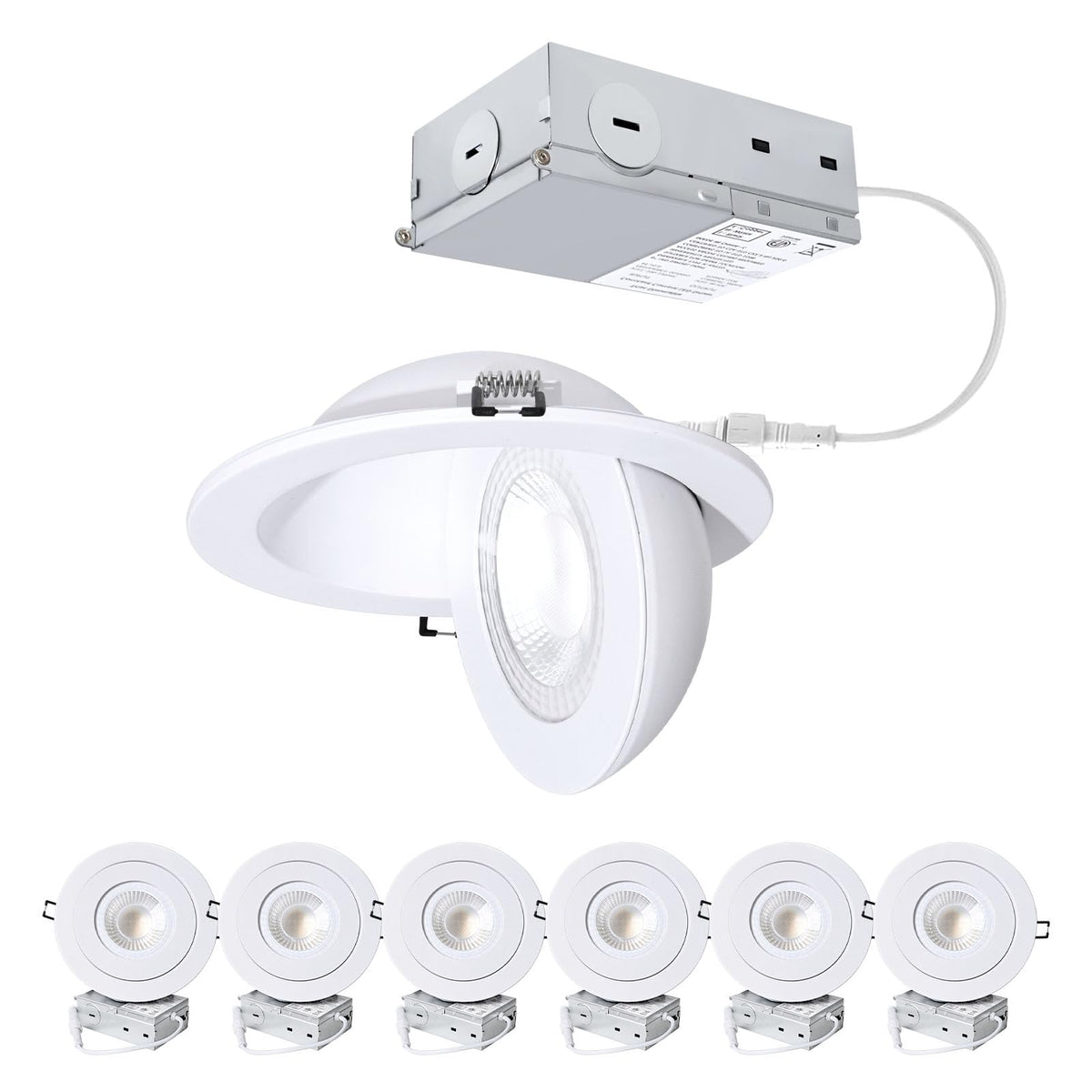 Popanu 6 Inch Led Gimbal Recessed Light White Dimmable 90 Tilt Swivel Eyeball Light