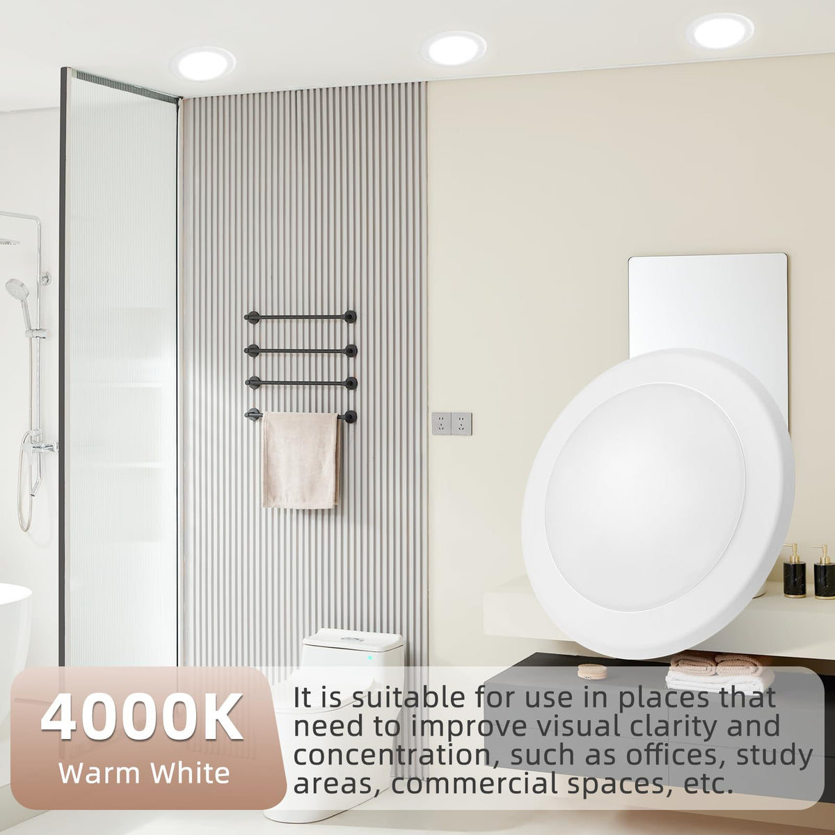 6 Inch Led Disk Lights, Dimmable Flush Mount Ceiling Lights, 4000K Cool White, 15W, 1050Lm Low Profile Led Recessed Lighting, In