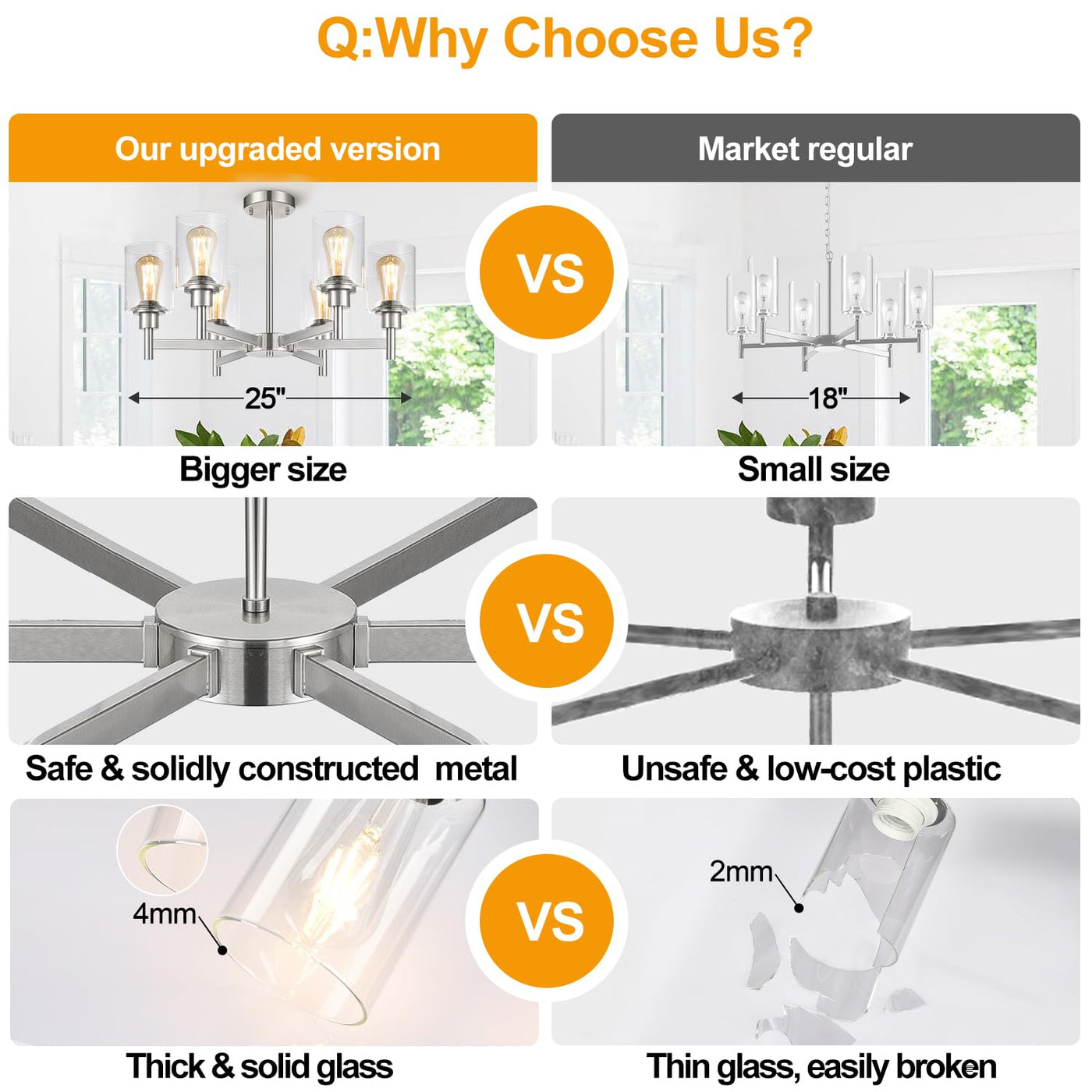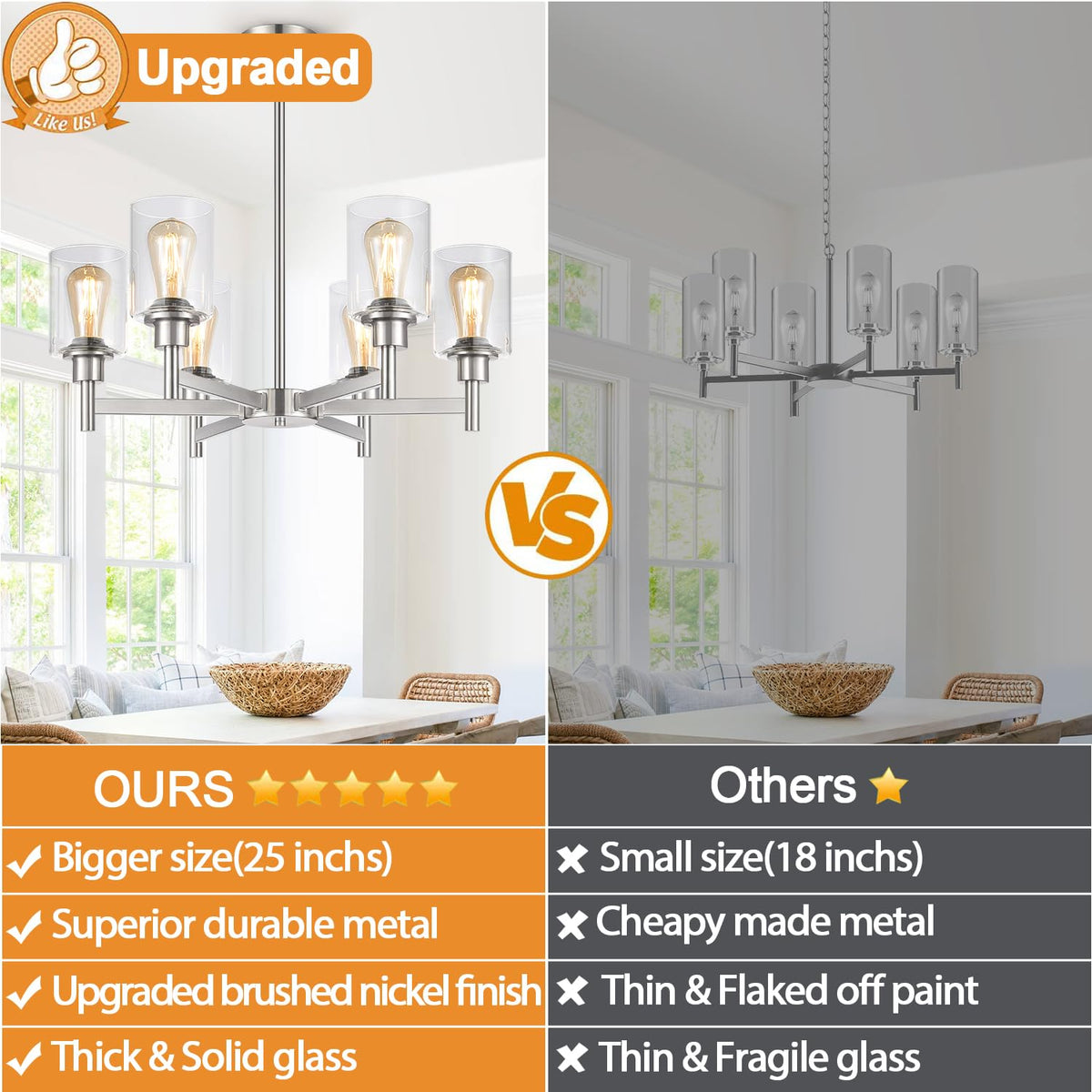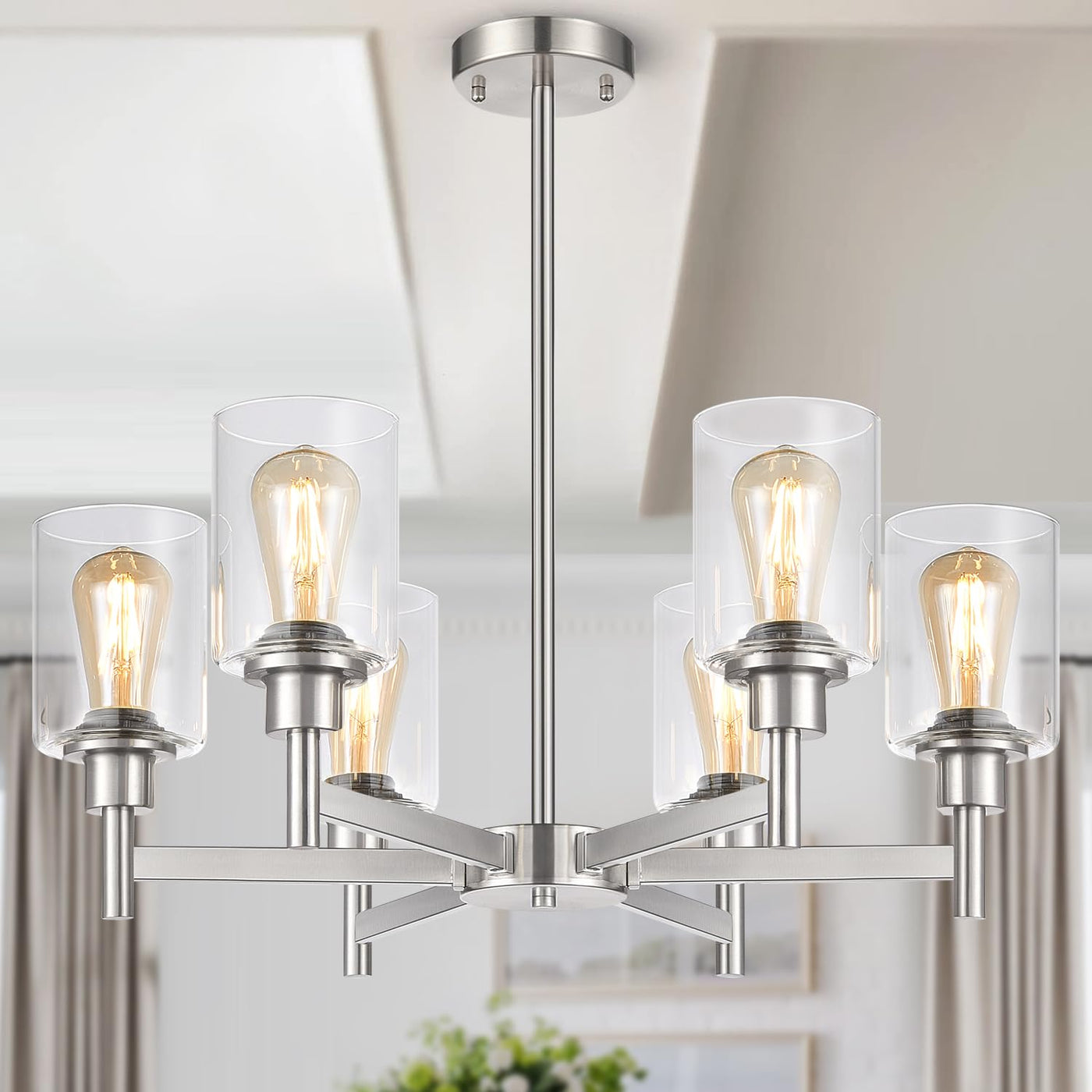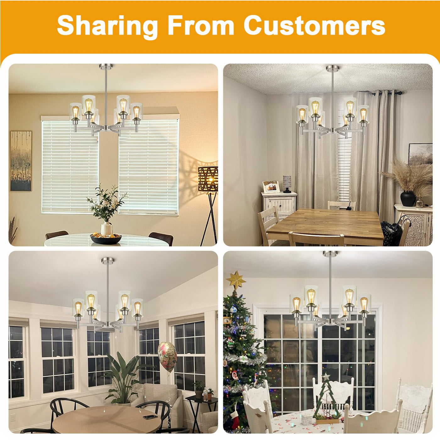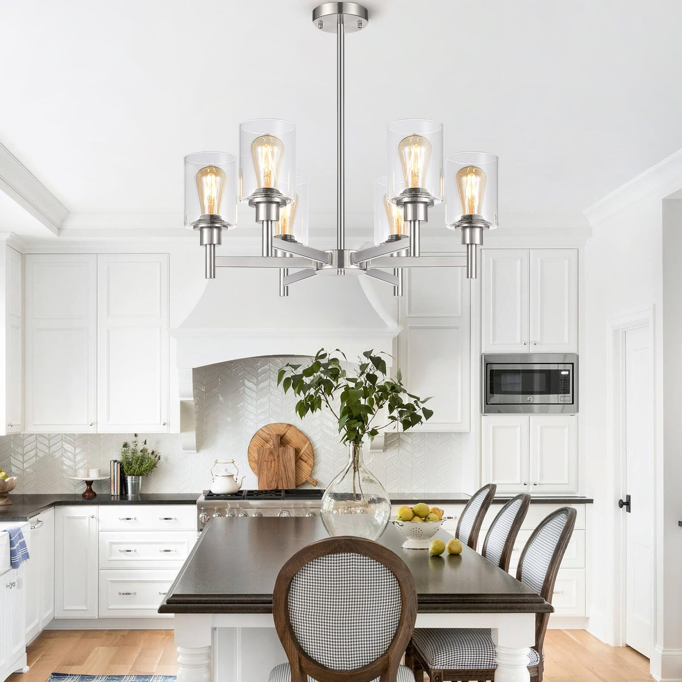 6 Light Farmhouse Chandelier For Dining Room Light Fixtures Over Table,Pendant Light Fixture With Clear Glass Shade For Living R