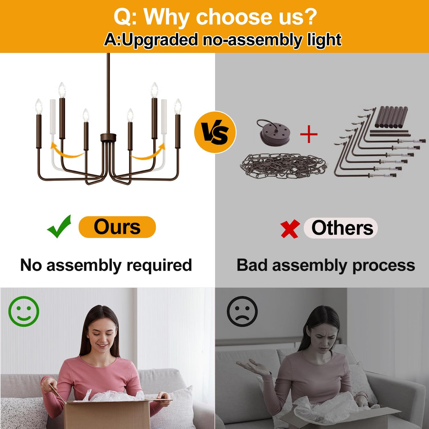 Q: Is the chandelier easy to install, and does it require assembly?A: The chandelier requires minimal assembly as the lamp arm part comes pre-assembled. Simply unfold the gathered lamp arms to complete the setup. All necessary parts and detailed instructions are included for hassle-free installation.