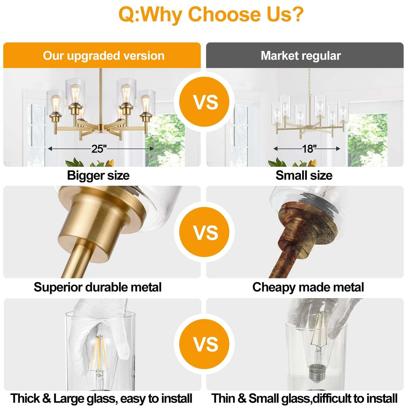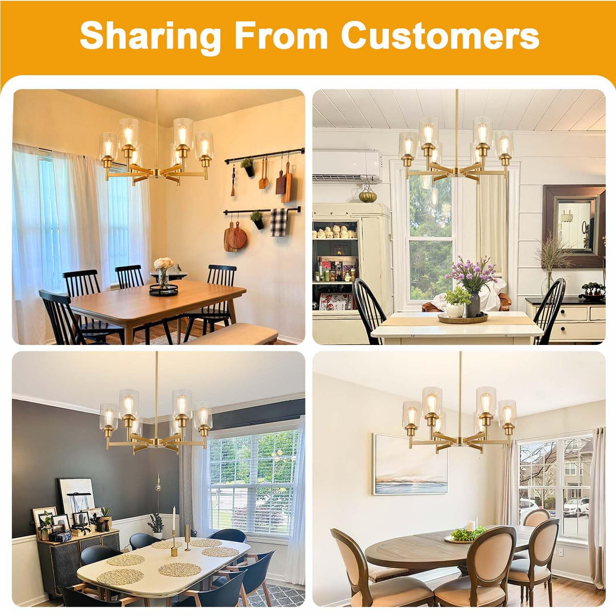6 Light Farmhouse Chandeliers For Dining Room Light Fixtures Over Table, Industrial Chandelier With Clear Glass Shade For Living