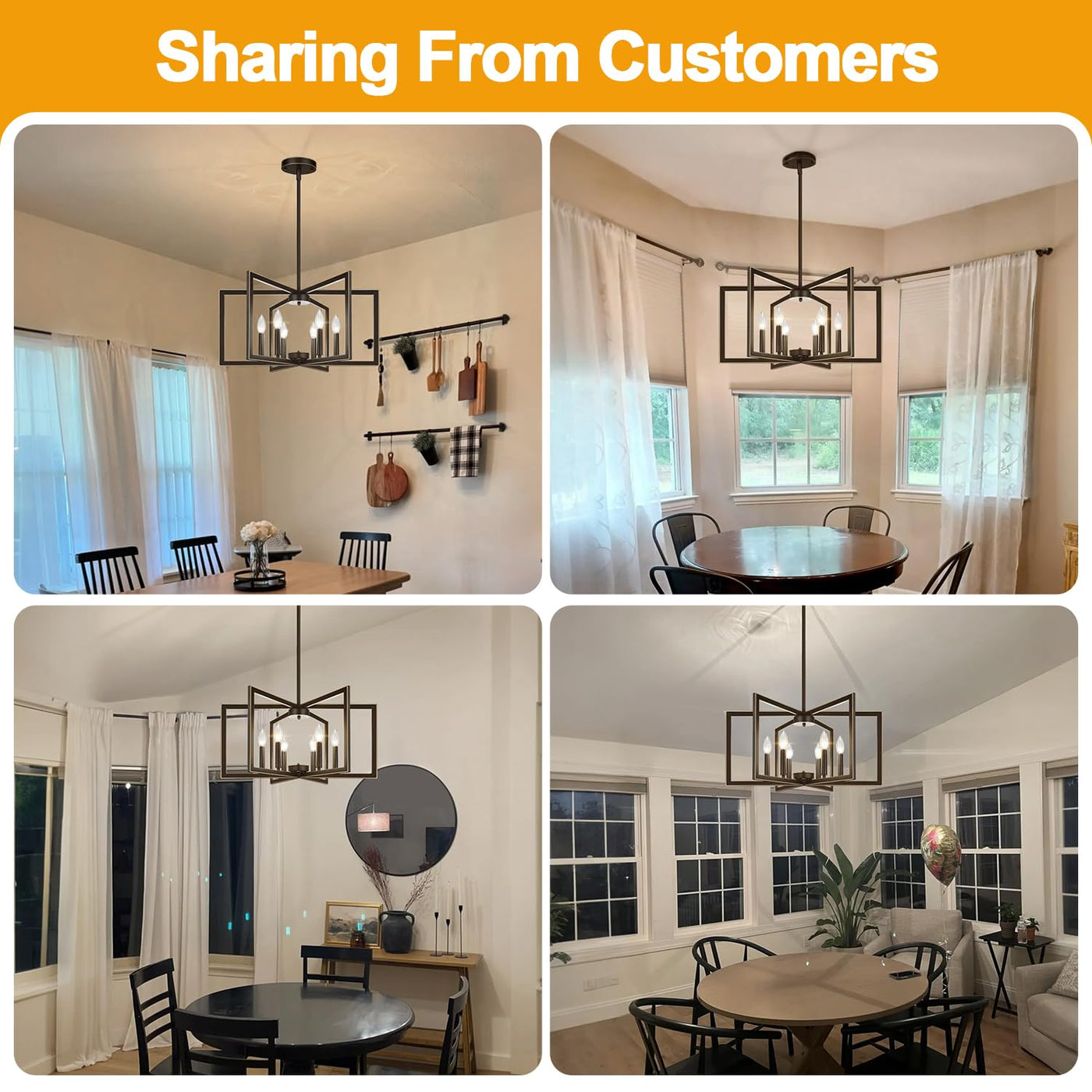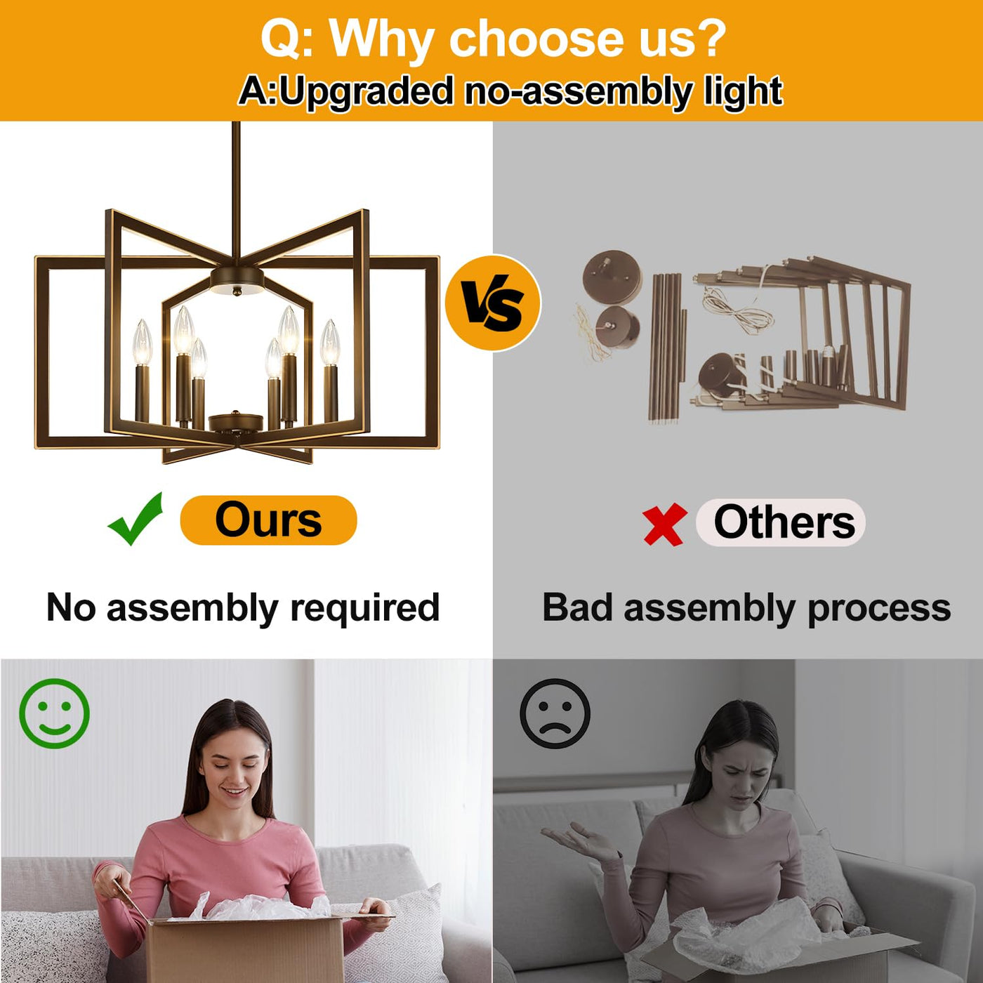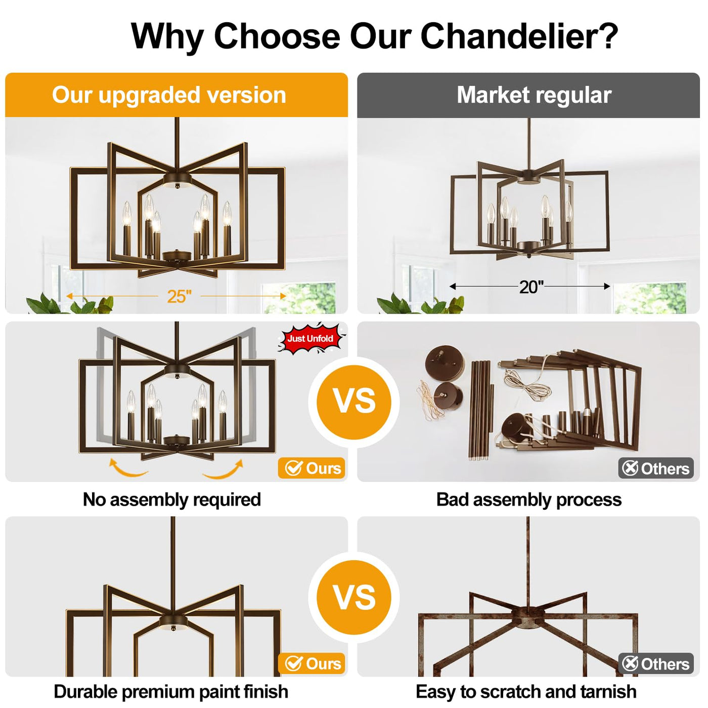 6-Light Modern Brown Chandelier, Geometric Dining Room Light Fixture Industrial Pendant Lights Kitchen Island, Hanging Metal Far