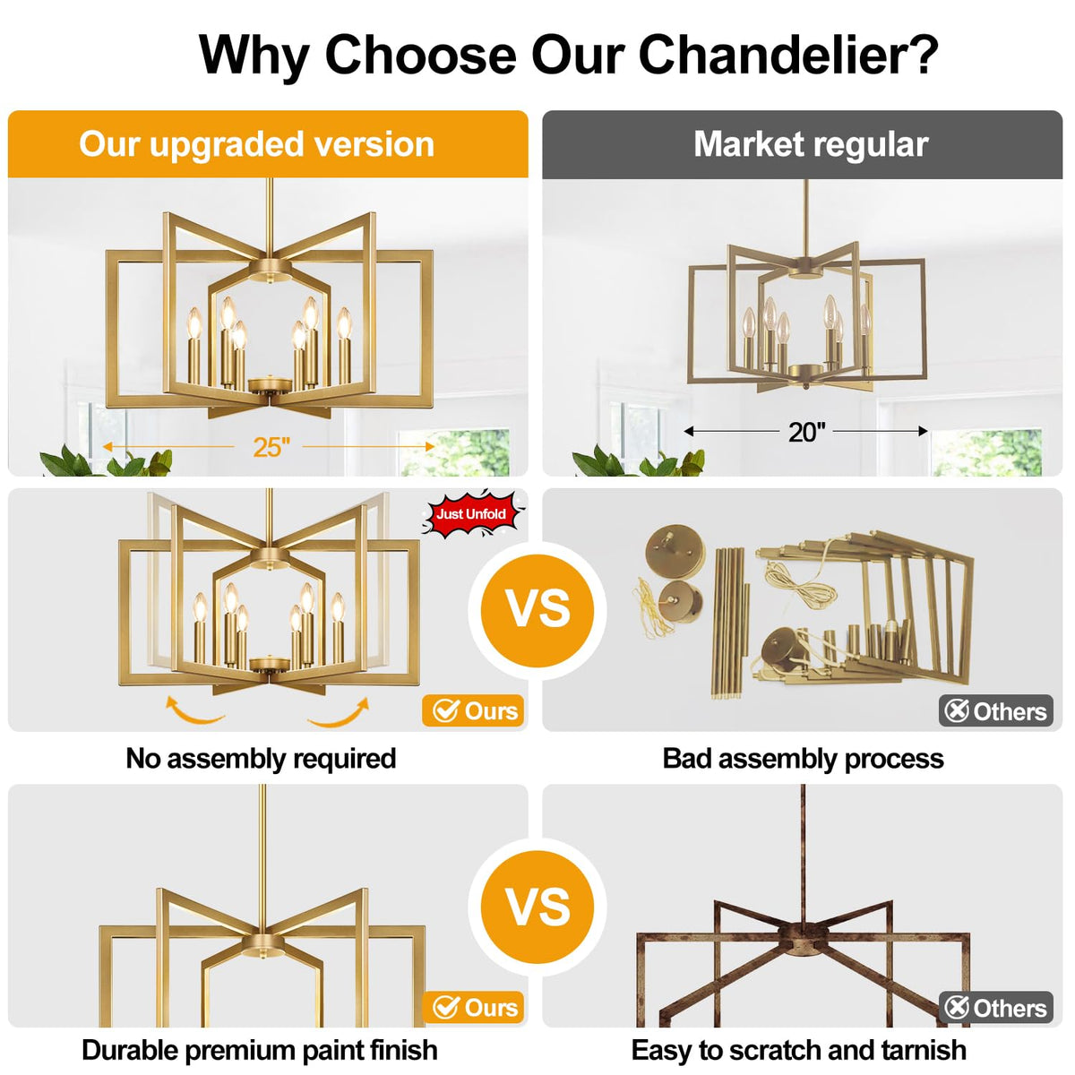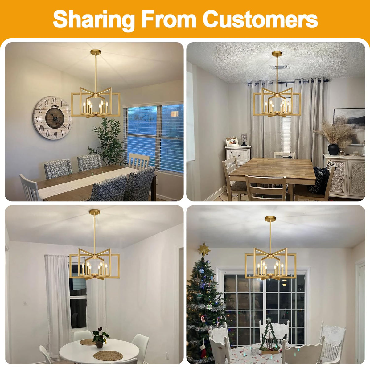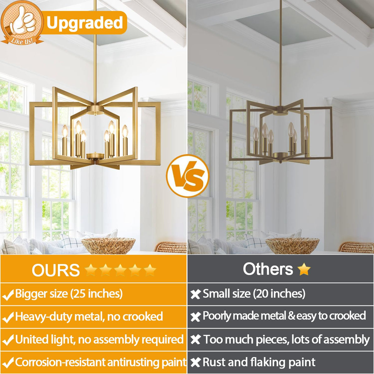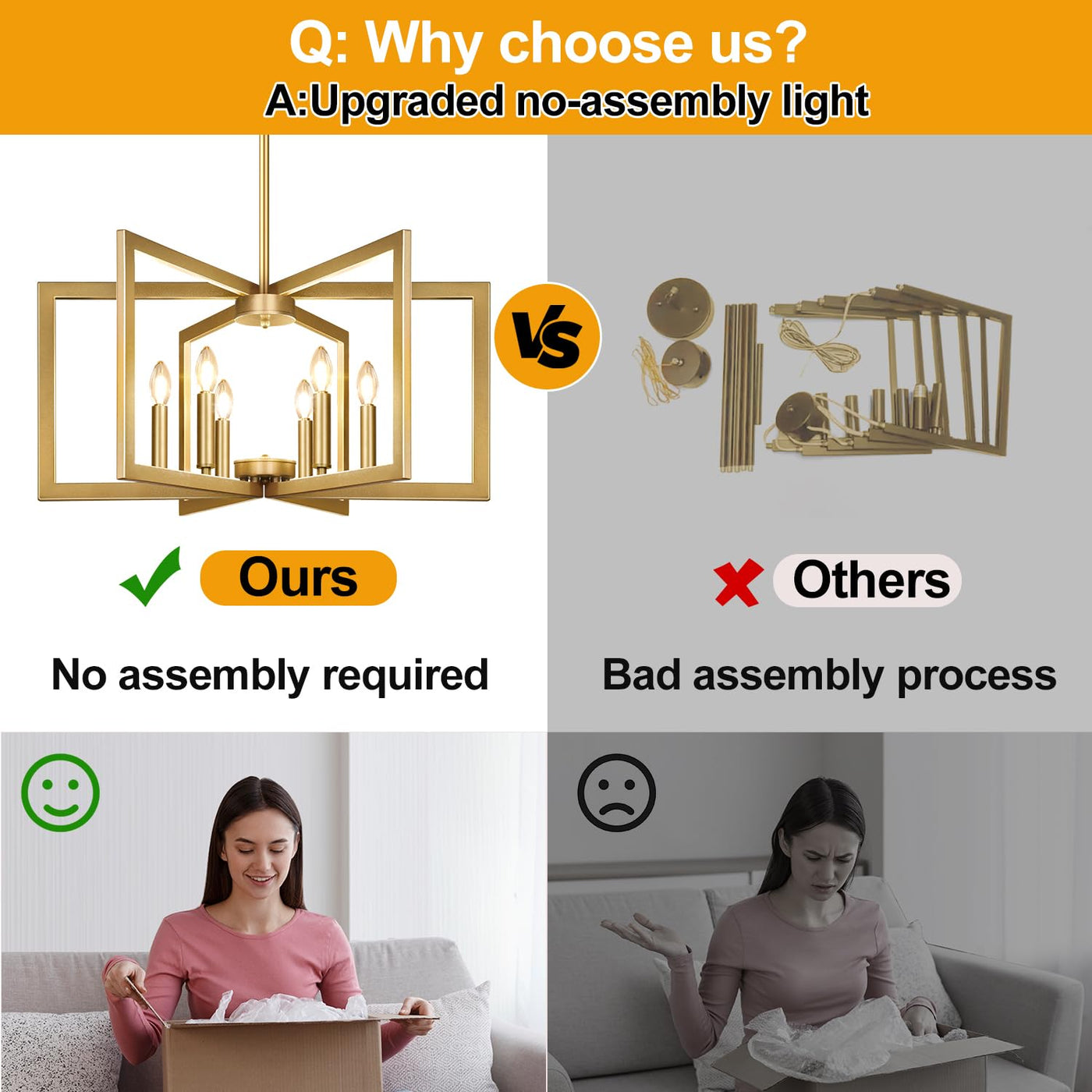 6-Light Modern Gold Chandelier, Geometric Dining Room Light Fixture Industrial Pendant Lights Kitchen Island, Hanging Metal Farm