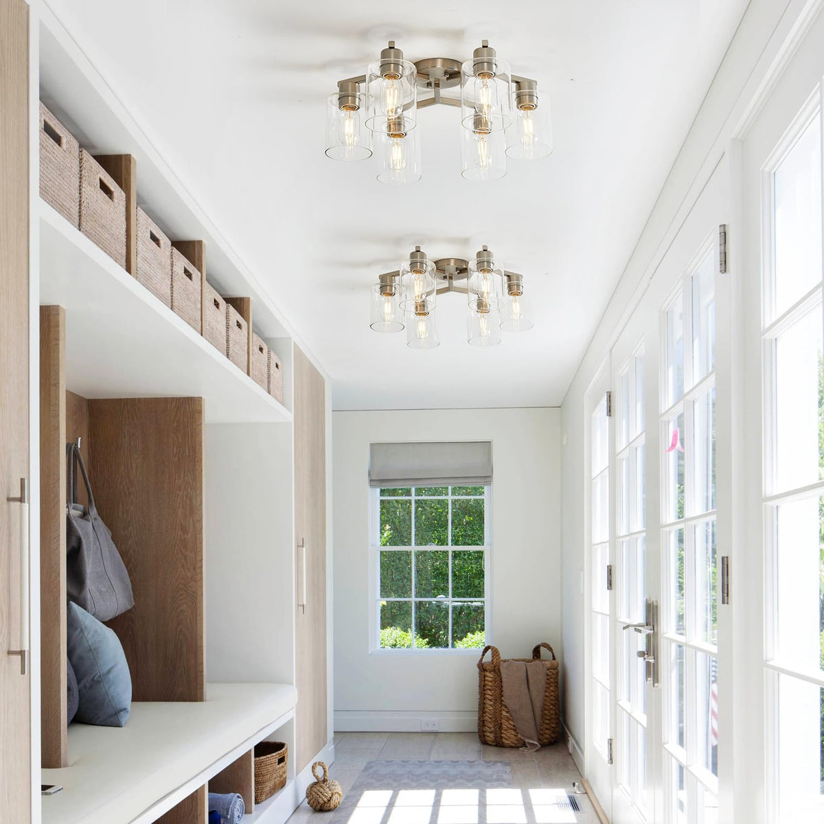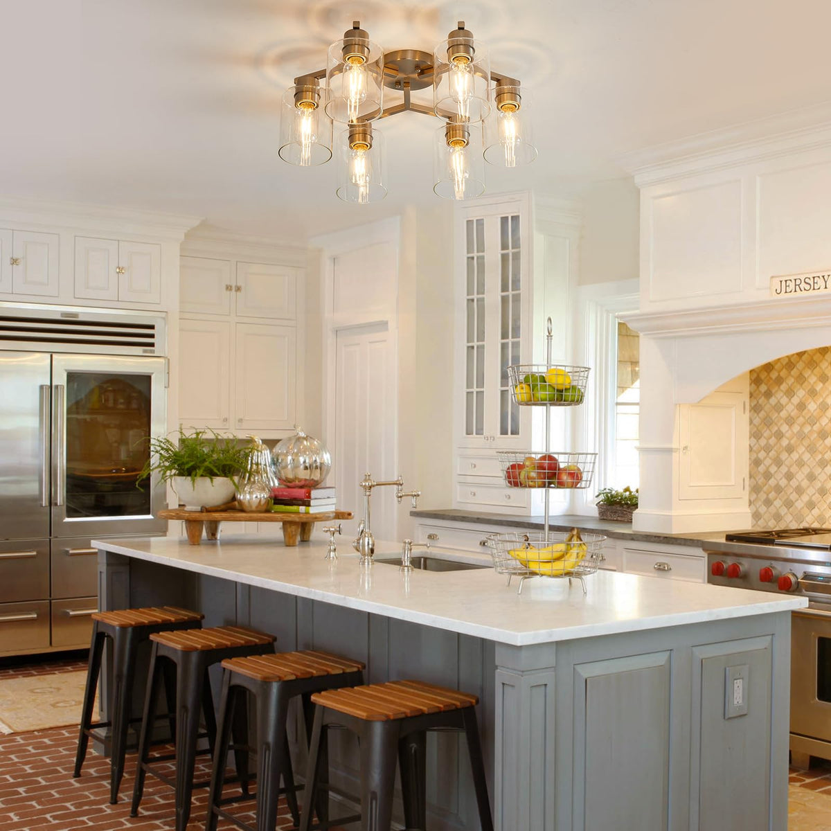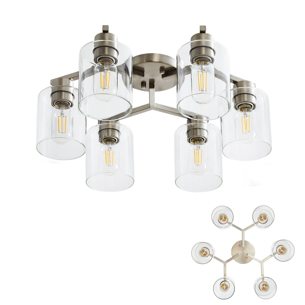6 Light Semi Flush Mount Ceiling Light Modern Brushed Nickel Ceiling Light Fixtures Kitchen Lighting Fixtures Cieling With Clear
