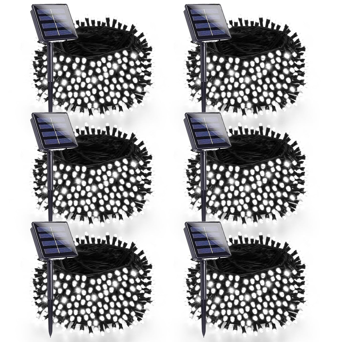 6 Pack 270Ft Solar Christmas Lights Outdoor Waterproof Super Bright 480 Led Solar String Lights With 8 Lighting Modes Green Wire Twinkle Tree Light For Outside Xmas Party Decor (Cool White)