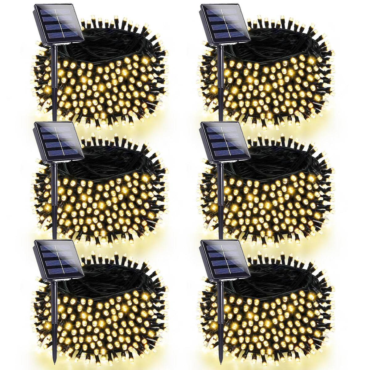 6 Pack 270Ft Solar Christmas Lights Super Bright 480 Led Solar Lights String With 8 Lighting Modes Outdoor Waterproof Green Wire Solar Mini Twinkle Light For Xmas Garden Decorations (Warm White)