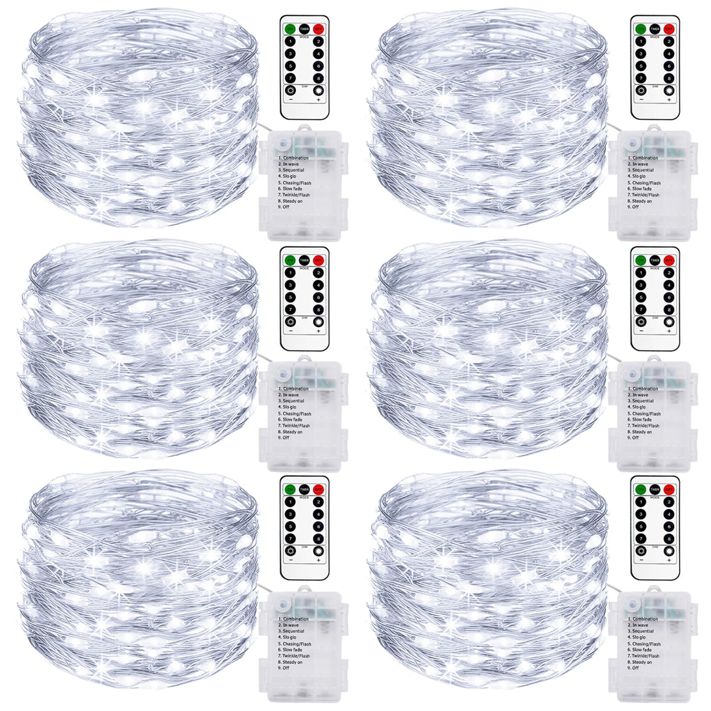 6 Pack 33Ft 100Led Fairy String Lights Battery Operated With Remote And Timer,Ip65 Waterproof Dimmable Copper Wire 8 Modes Led Twinkle Lighting Indoor Outdoor For Bedroom Christmas Decor-Cool White