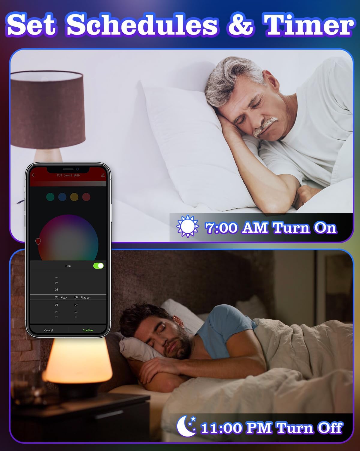 6 Pack E12 Smart Bulbs, Alexa Wifi Candelabra Smart Light Bulbs 5W 2700K-6500K Color Changing Dimmable Rgbcw, Music Timer Ceilin