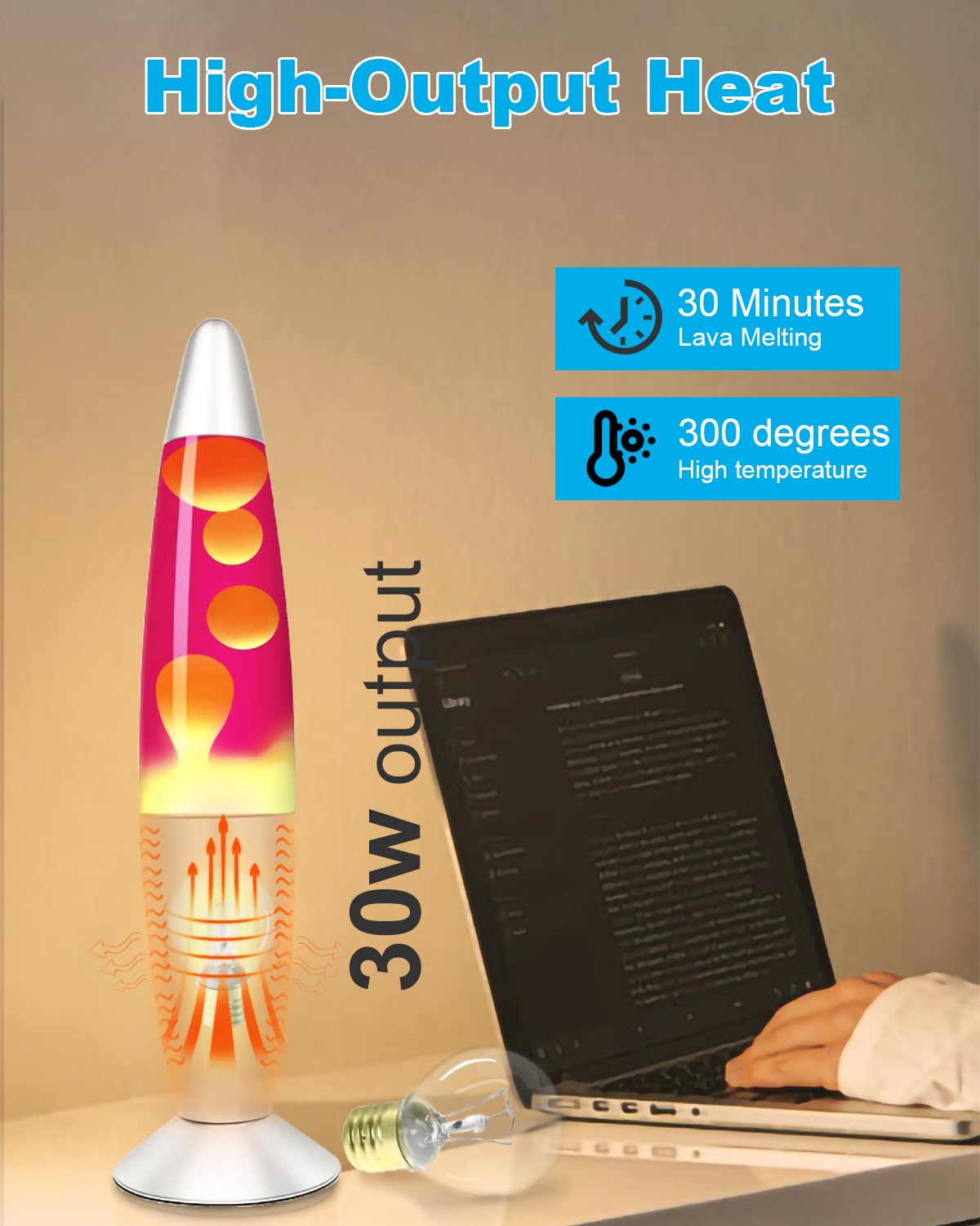 Q: How quickly do these lava lamp bulbs heat up?A: These E17 30-watt lava lamp bulbs are designed for quick preheating, generating a large amount of heat swiftly to minimize startup time, allowing you to enjoy the aesthetic appeal of your lava lamp in no time.