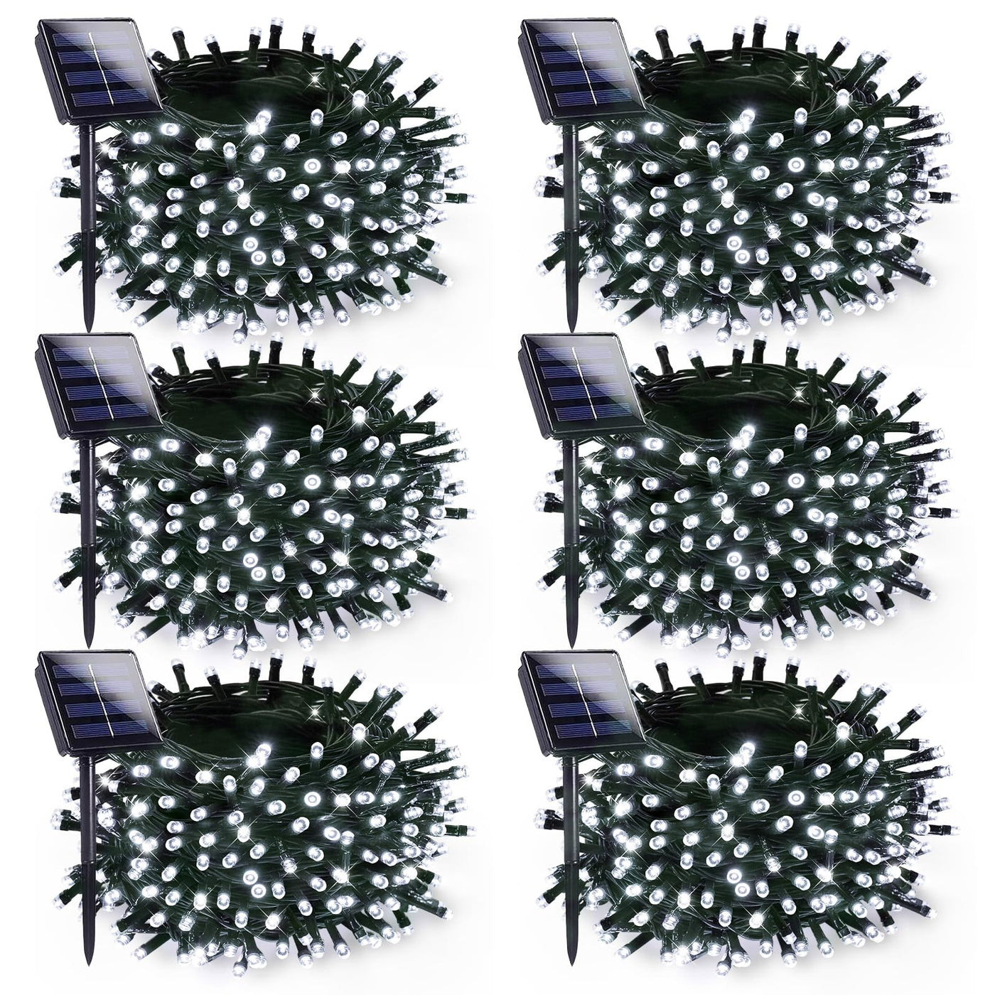 6 Pack Solar Christmas Lights Outdoor Waterproof, 600 LED 198 FT Solar Powered String Lights Outdoor with Green Wire 8 Lighting