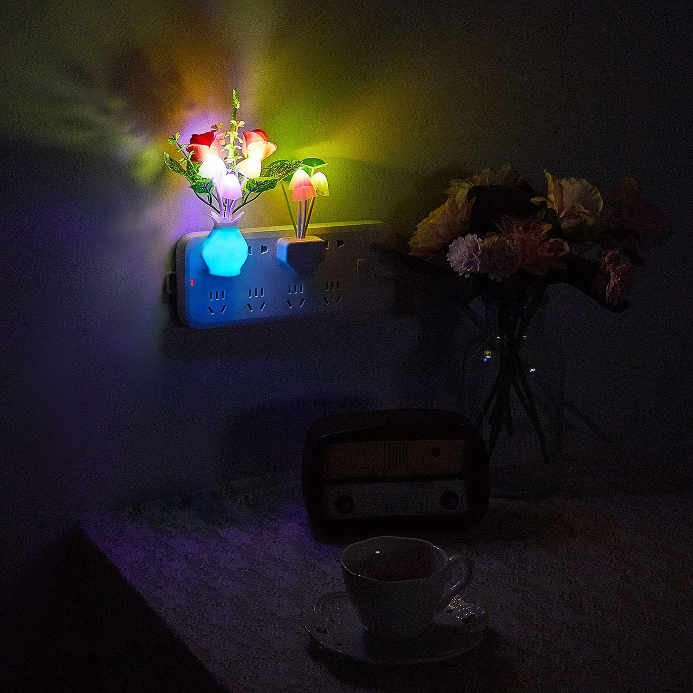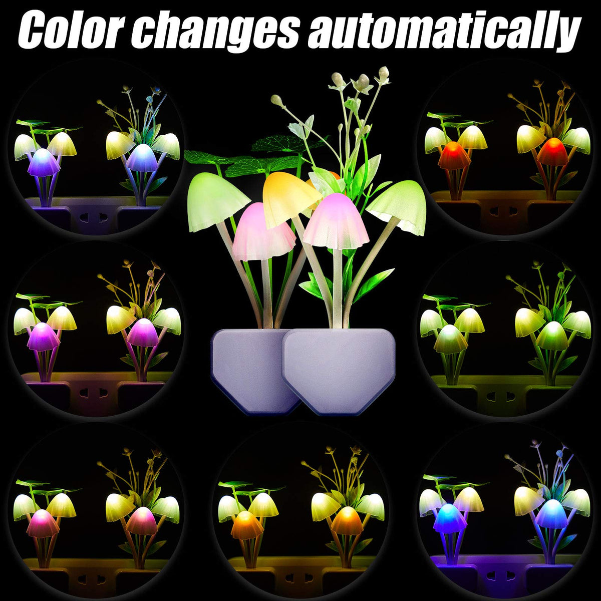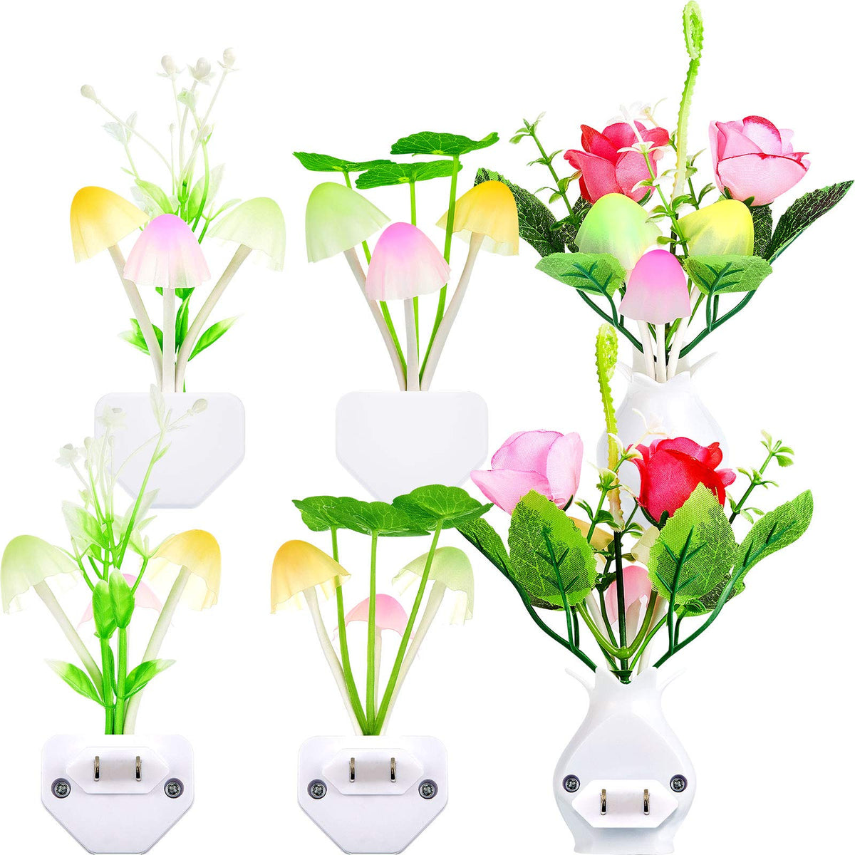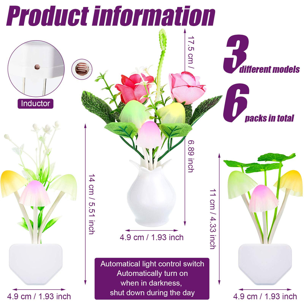 6 Pieces Mushroom Night Lights 7 Color Changing Plug-In Light Sensor Wall Lamp, Led Night Lights Sensor Wall Lamp For Adult Than