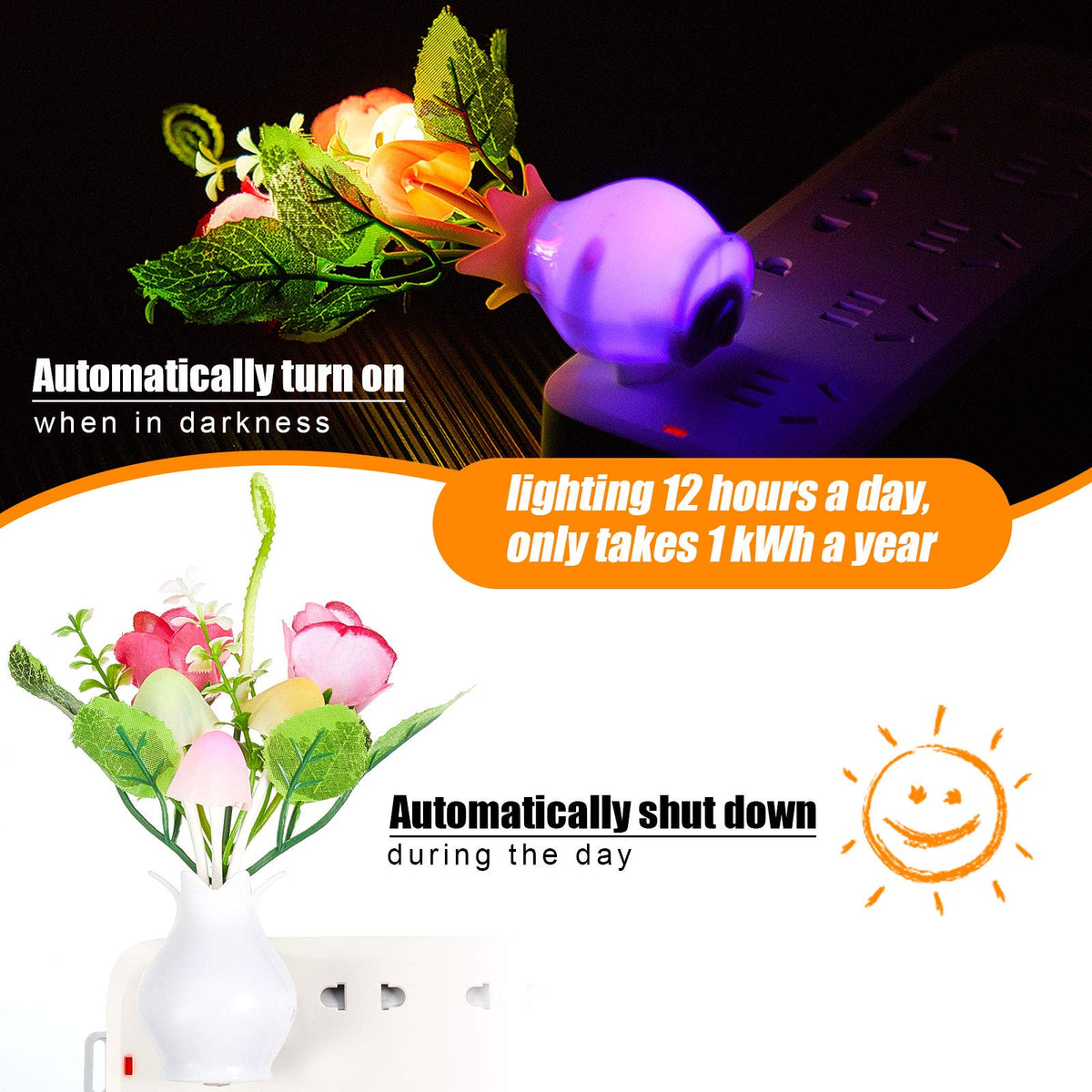 Features:Easy to apply:When you need to use them, just plug the colorful night lights into the sockets, they are so small and cute that can be applied as decorative lights.Create a romantic atmosphere:With chic design, these delicate night lights can emit soft lights, may make you feel like you are in a fairy tale world, they can create a warm and romantic atmosphere for your home.Attractive and useful presents:The mushroom night lamps are practical, you are able to give them as presents to your friends, your friends will be touched and joyful when receive these charming LED mushroom night lights.Specifications:Plug type: US plugMaterials:Mushroom: siliconeLeaf: plasticWeight: 30 gDimensions: 12 x 4.5 x 4.5 cm/ 4.72 x 1.77 x 1.77 inchesColor: 7 Kinds of color changes (only the middle pink mushroom LED light changes color, the other green and orange mushrooms illuminate the soft white light).Light source: LEDWattage: 0.1 wattsPackage content:2 x Green plant mushroom night lights2 x Water plant mushroom night lights2 x Rose flower night lightsWarm notes:Manual measurement, please allow a slight dimensional error of the item.Due to different screen displays, the actual colors may be slightly different.
