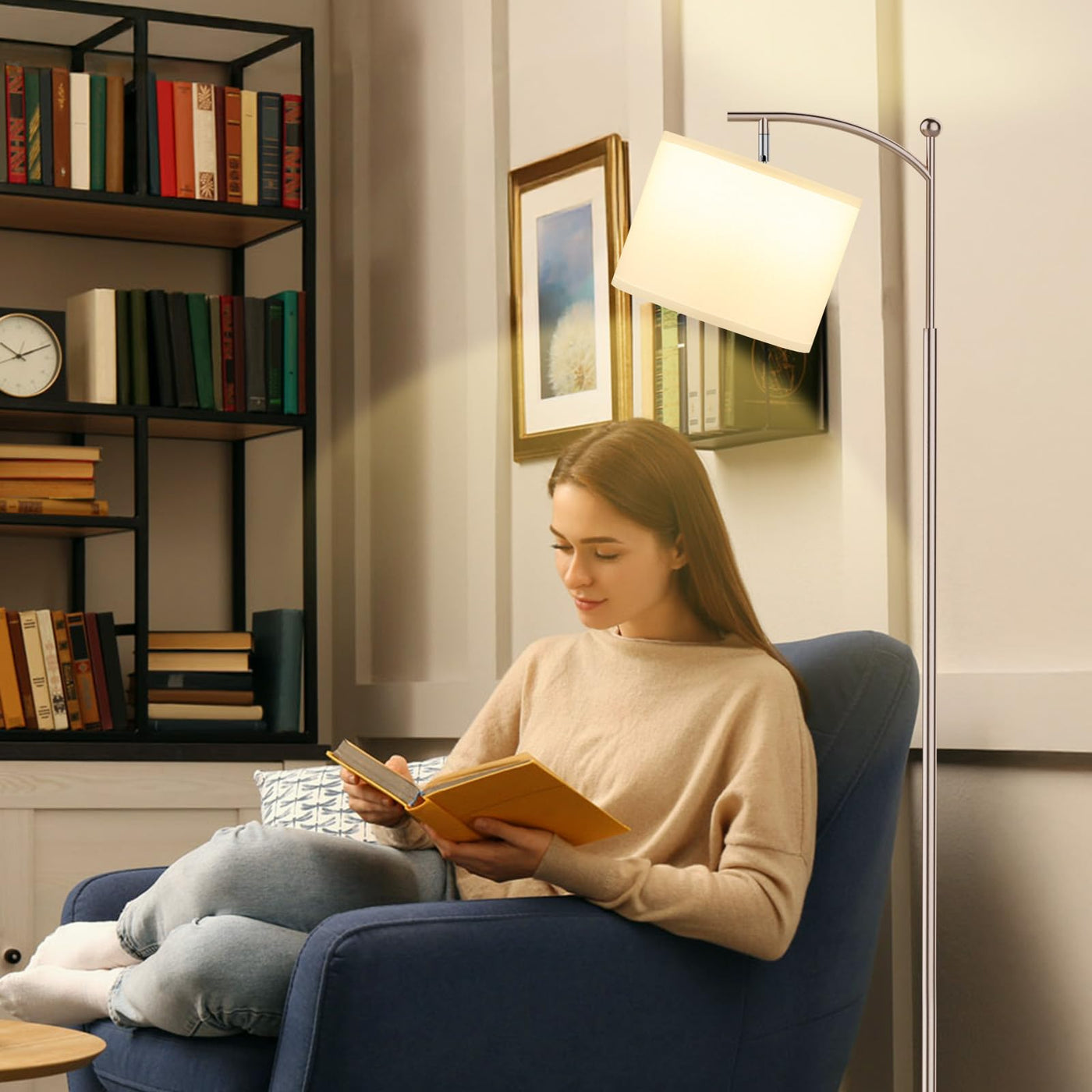 Q: Is the lampshade adjustable?A: Yes, the lampshade is adjustable with a rotating head, making it easy to position the light for reading or working, especially when placed behind furniture.