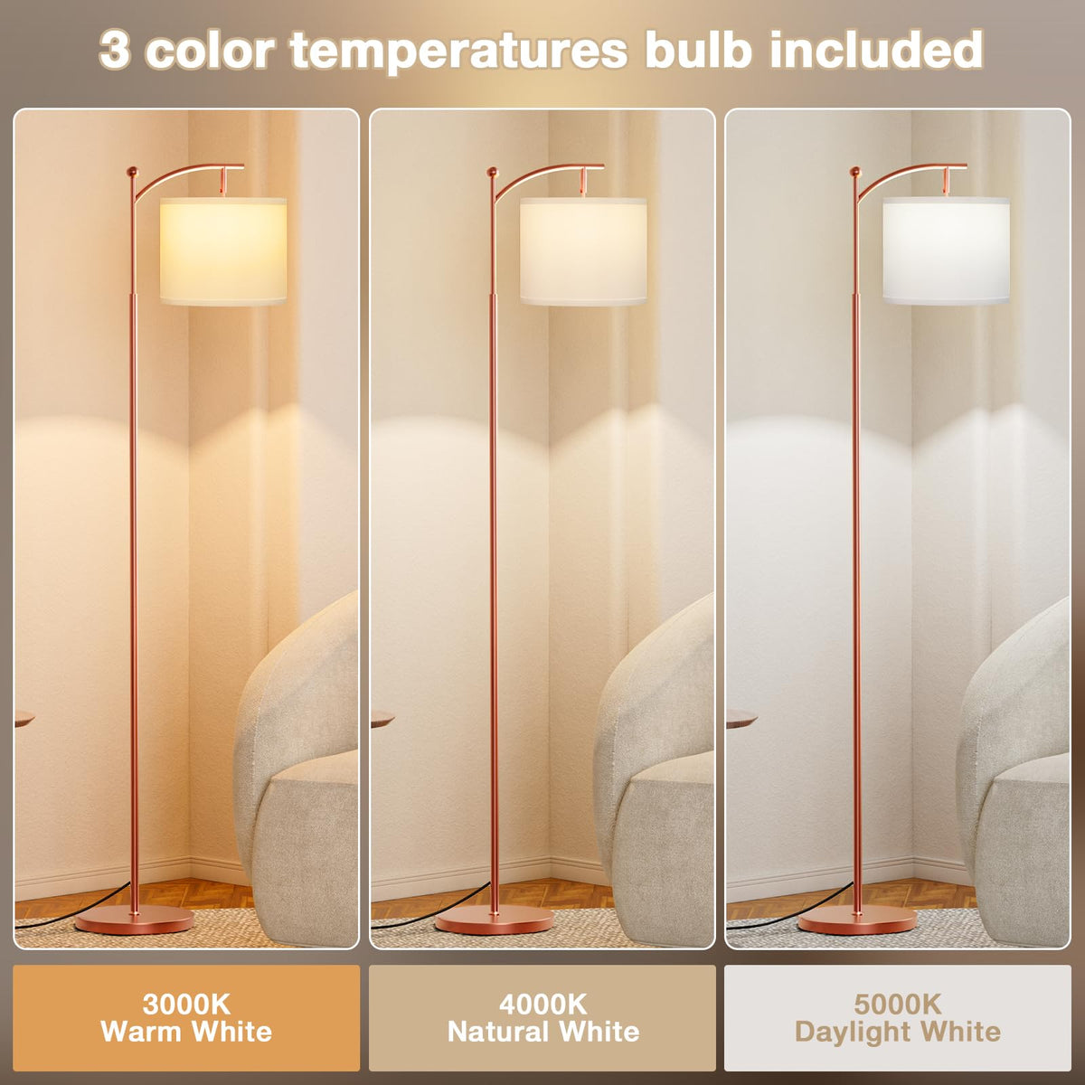 60'' Floor Lamps For Living Room With 3 Color Temperatures, Adjustable White Shade With Rose Gold Pole, Tall Lamps For Living Ro