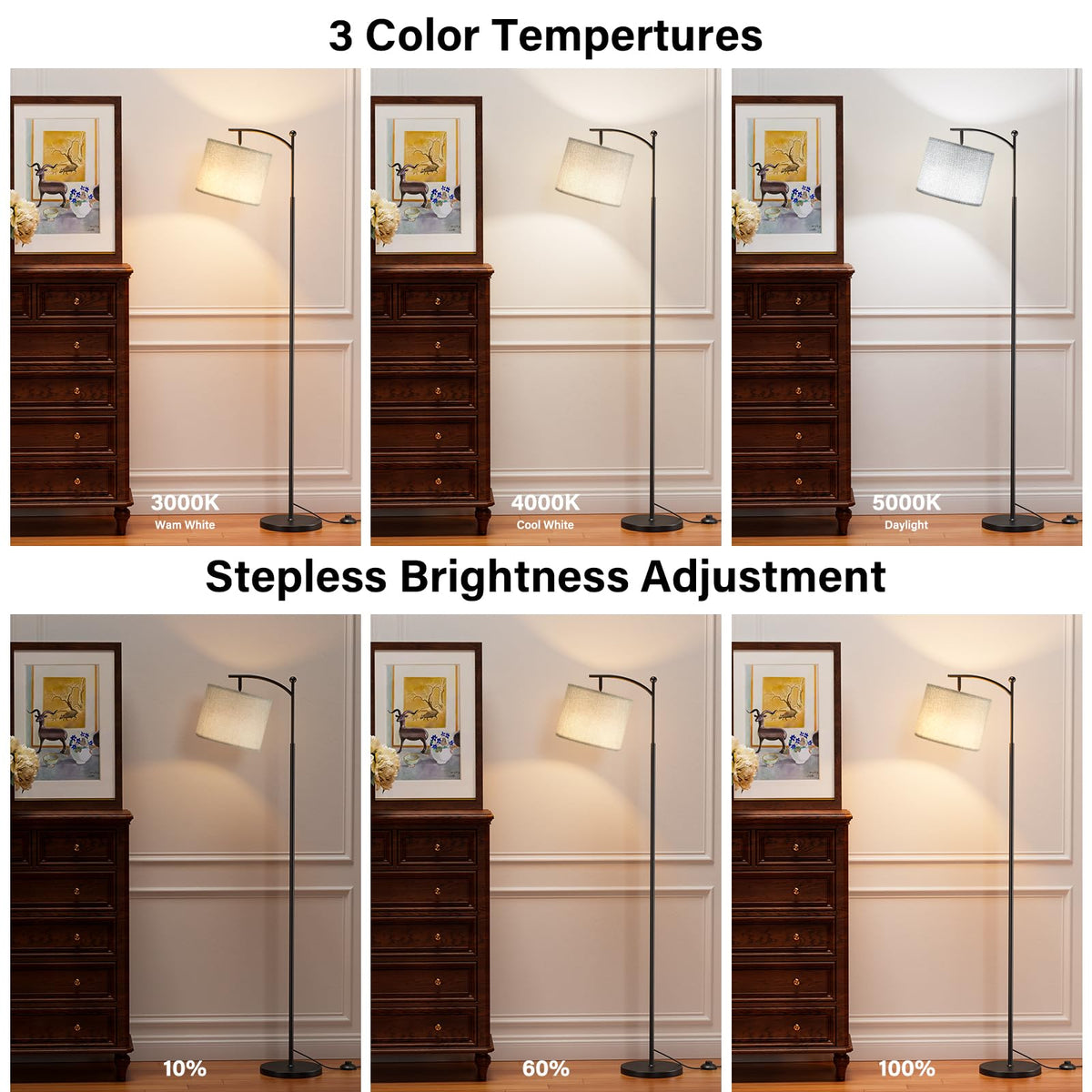 Q: Can I change the color temperature of the light?A: Yes, this floor lamp allows you to adjust the color temperature between 3000K to 6000K, providing options for warm white, natural white, and cold white light.
