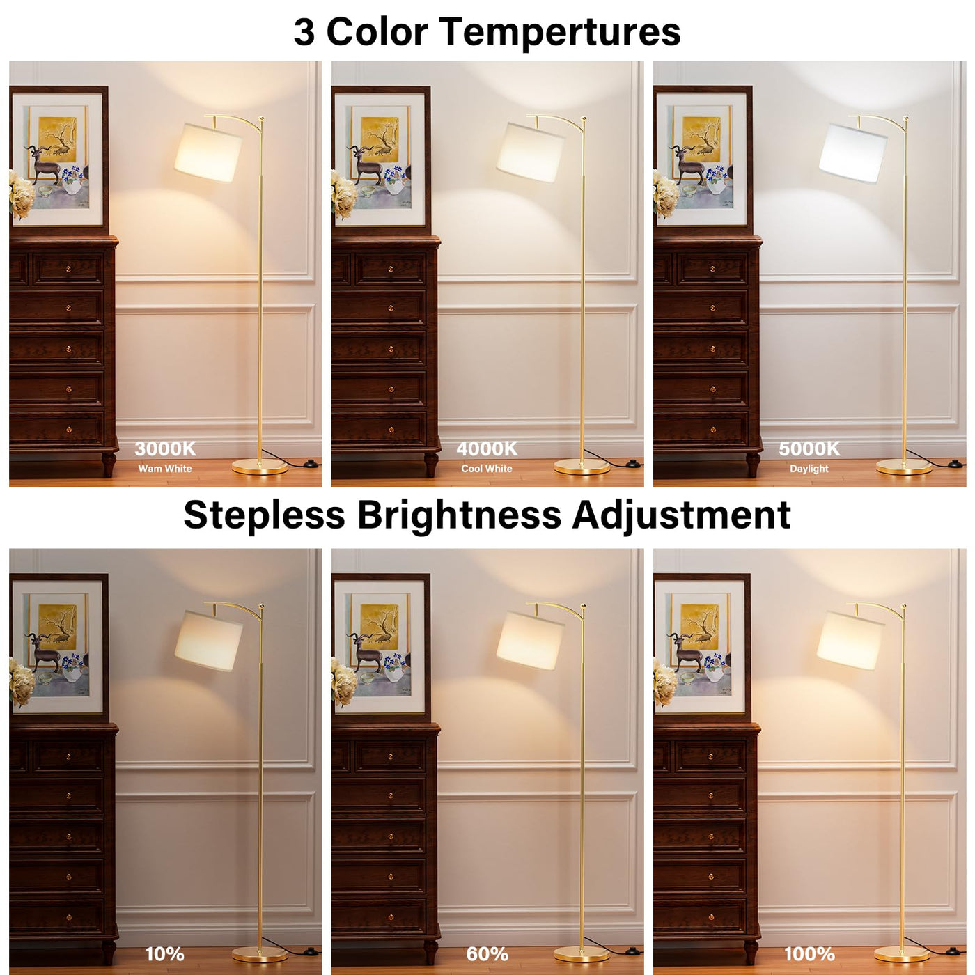 Q: How does the remote control work with the floor lamp?A: The floor lamp comes with a remote control that allows you to easily adjust the brightness from 30% to 100% and select your preferred color temperature. Make sure to set the foot switch to ON before using the remote.
