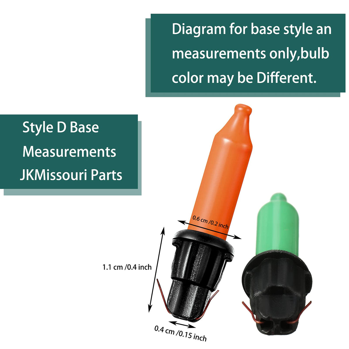 Q: What are the specifications of the 60 Count Mini Incandescent Wire String Lights Replacement Bulbs?A: The replacement bulbs are 2.5 volts, 0.425 watt, and 0.17 ampere, suitable for 50/100/150/200 count incandescent wire string lights. The base height is 1.1 cm (0.4 inch), base diameter is 0.4 cm (0.15 inch), and bulb diameter is 0.6 cm (0.2 inch).