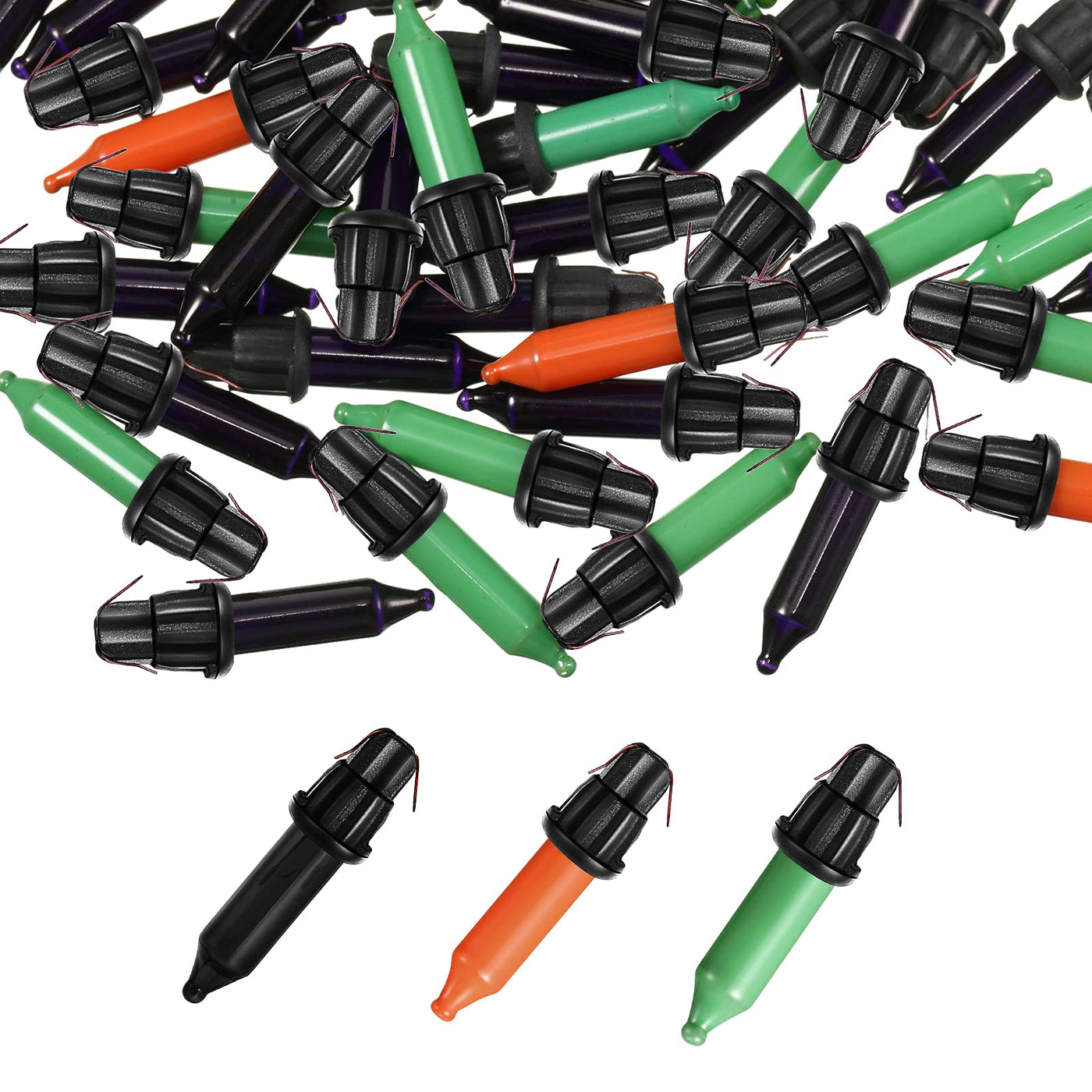 60Count 2.5V Christmas 50/100/150/200 Count Mini Incandescent Wire String Lights Replacement Bulbs Indoor/Outdoor Christmas Lights Decor For Home Xmas Tree (Black Base With Orange, Green, Black Bulb)