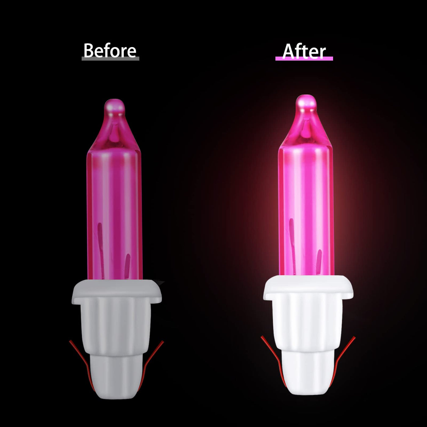60Count 2.5V Christmas 50/100/150/200 Count Mini Incandescent Wire String Lights Replacement Bulbs Indoor/Outdoor Christmas Lights Decor For Home Xmas Tree (White Base With Pink Bulb)