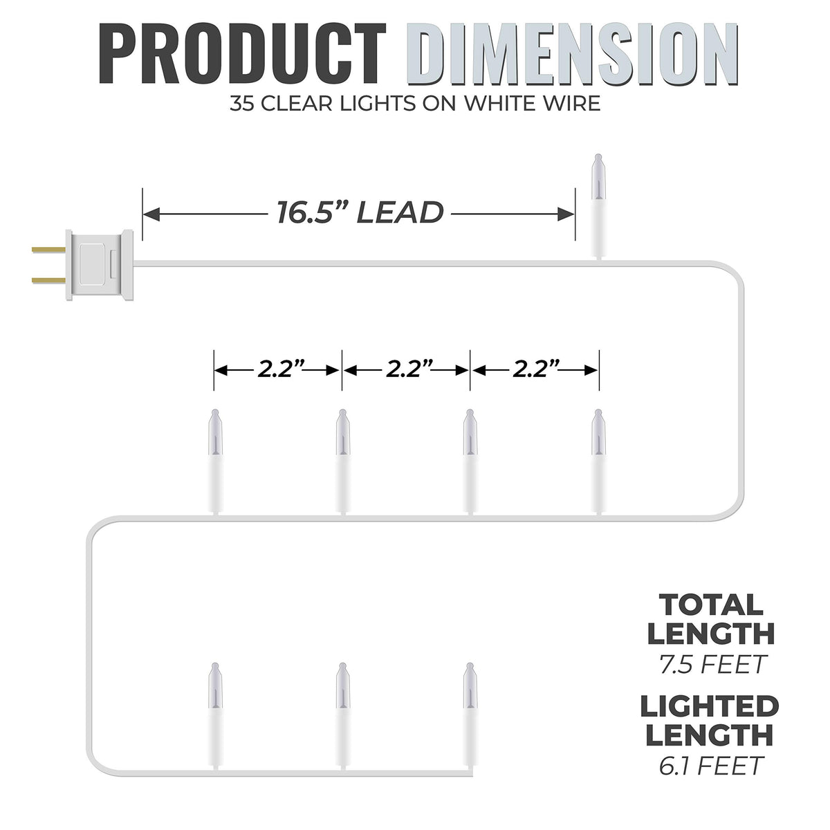 612 Vermont Clear 35 Count Christmas String Lights On White Wire Cord, Ul Approved For Indoor Use Only, Total Length 7.5 Foot, L