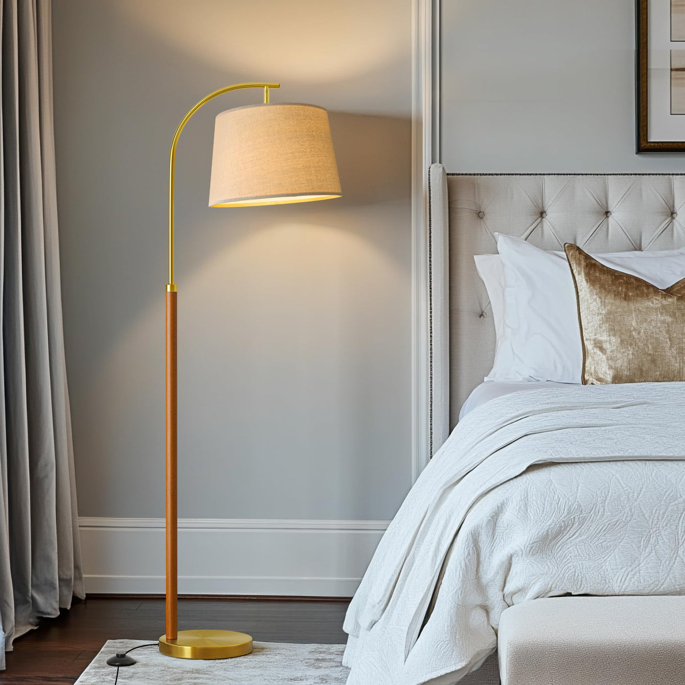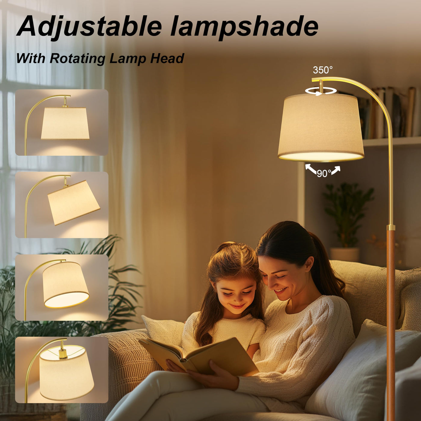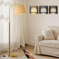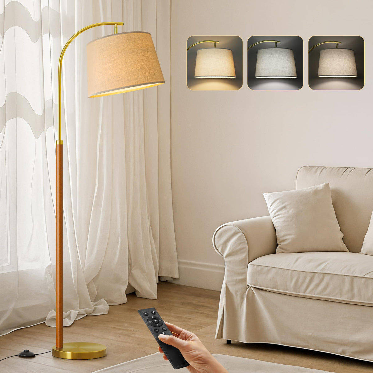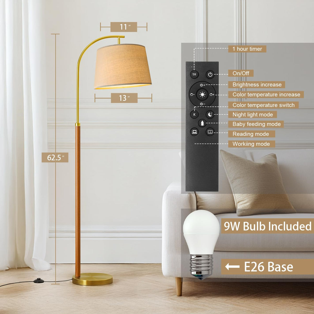 62.5'' Gold Floor Lamp For Living Room Dimmable Standing Lamp With Remote & Foot Switch, 3 Color Temperatures Arc Tall Lamp Wood