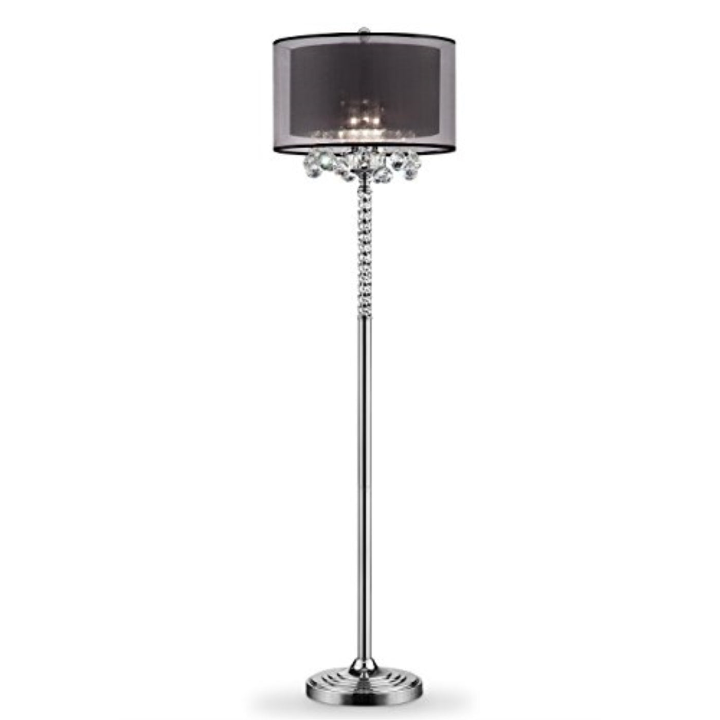 OK Lighting OK-5150F 62.50'' H Effleurer Floor Lamp The exquisite floor lamp creates a contemporary and stylish look for this chrome finished lamp. It features a double layered shade with the outer layer sheer and the inner black, stunning crystal strands with faceted crystal balls, and an elegant clear glass pole to add glam. Be prepared to be mesmerized by the unique shadows on the shade when the lamp is on. Place it in any corner of your living space to add a chic look to your home. Item Weight: 21.0 lb , Country of Origin: China , Brand name: OK Lighting , Item Dimensions: 17.0''L x 17.0''W x 61.5''H