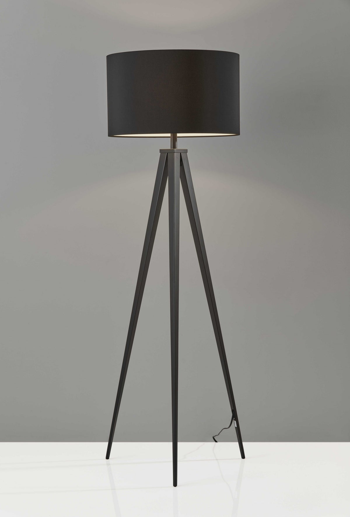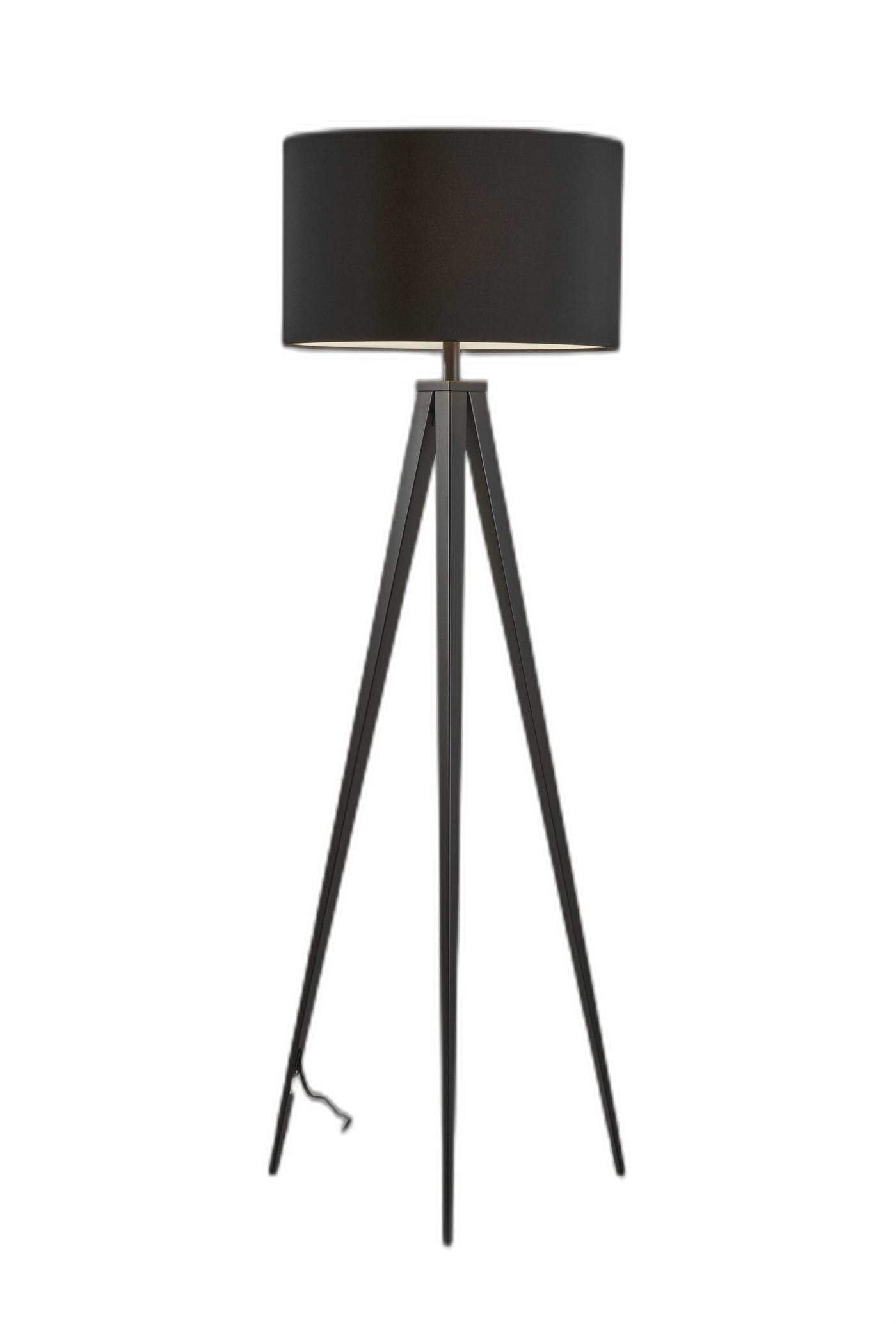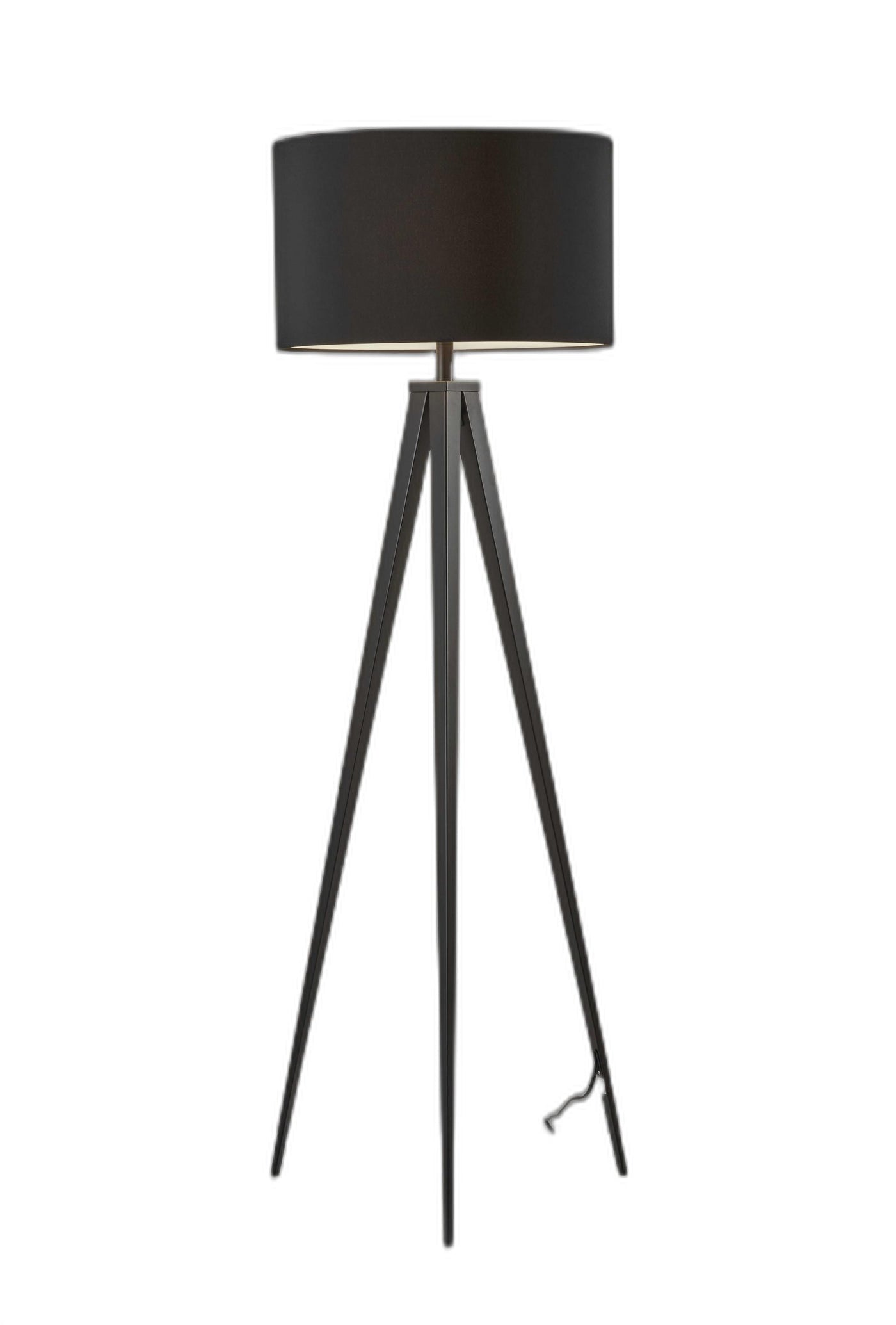 Embrace the good life with this hard working and stylish 62'' black tripod floor lamp with black drum shade. A gorgeous black metal base bring just the right amount of pizzazz to this fabulous lamp. The coloration of the black lamp base creates a fashionable marriage with the the black fabric drum shaped shade. A sturdy three leg base gives this tripod style floor lamp a designer style that leans towards modern and industrial for a unique and stylish look. The light that this lamp throws is soft and warm to elevate the look of most any space in your home. Bring some lite and good vibes into your space with this updated and stylishly designed lamp. 61.5'' H x 21'' W x 21'' D