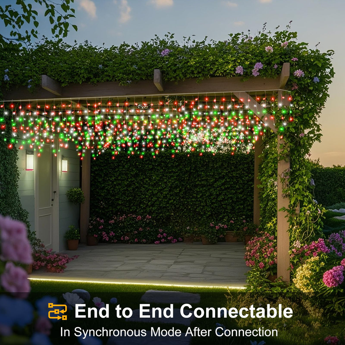 66Ft Icicle Lights For Outside Red White And Green Christmas Lights Outdoor Indoor 640 Led Twinkle String Light With 120 Drops Clear Wire Connectable Timer For Thanksgiving Room Home Wall Bedroom