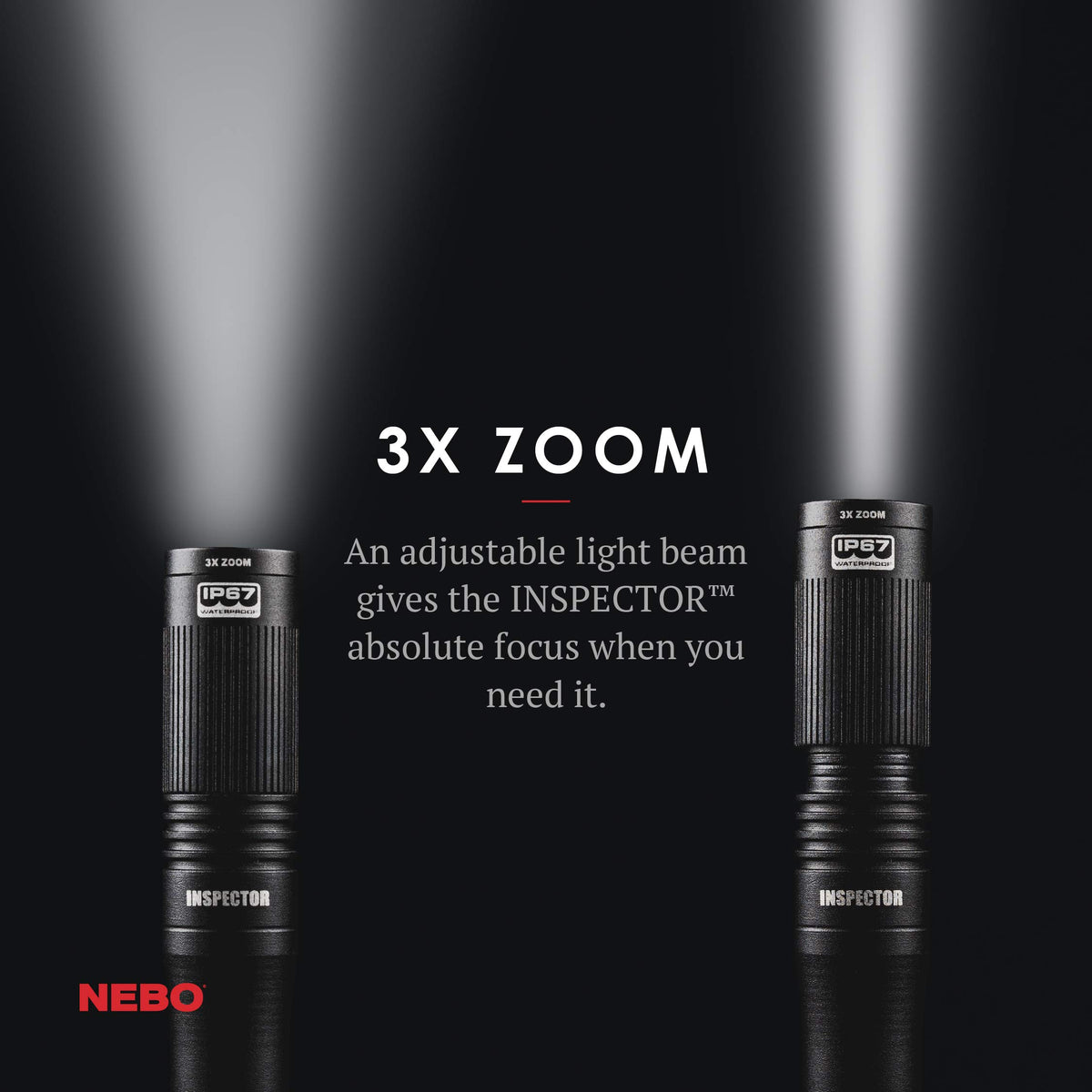 The inspector is an innovative, powerful pocket light that outputs 180 lumens, with 3 light Modes and 3x adjustable zoom that provide the perfect amount of light for any situation. The inspector is also waterproof (IP67) and features a removable steel clip and soft-touch technology, which provides momentary operation when the light is off, With the slight touch of the button. Lightweight design to be handheld less than 6 inches long and half inch in diameter. 180 lumens high mode with 84 meter (275 feet) beam throw lasts 2 hours. Low mode option for longevity 6 hours and 46 meters (150 feet) at 54 lumens. High beam Strobe function for 50 minutes.