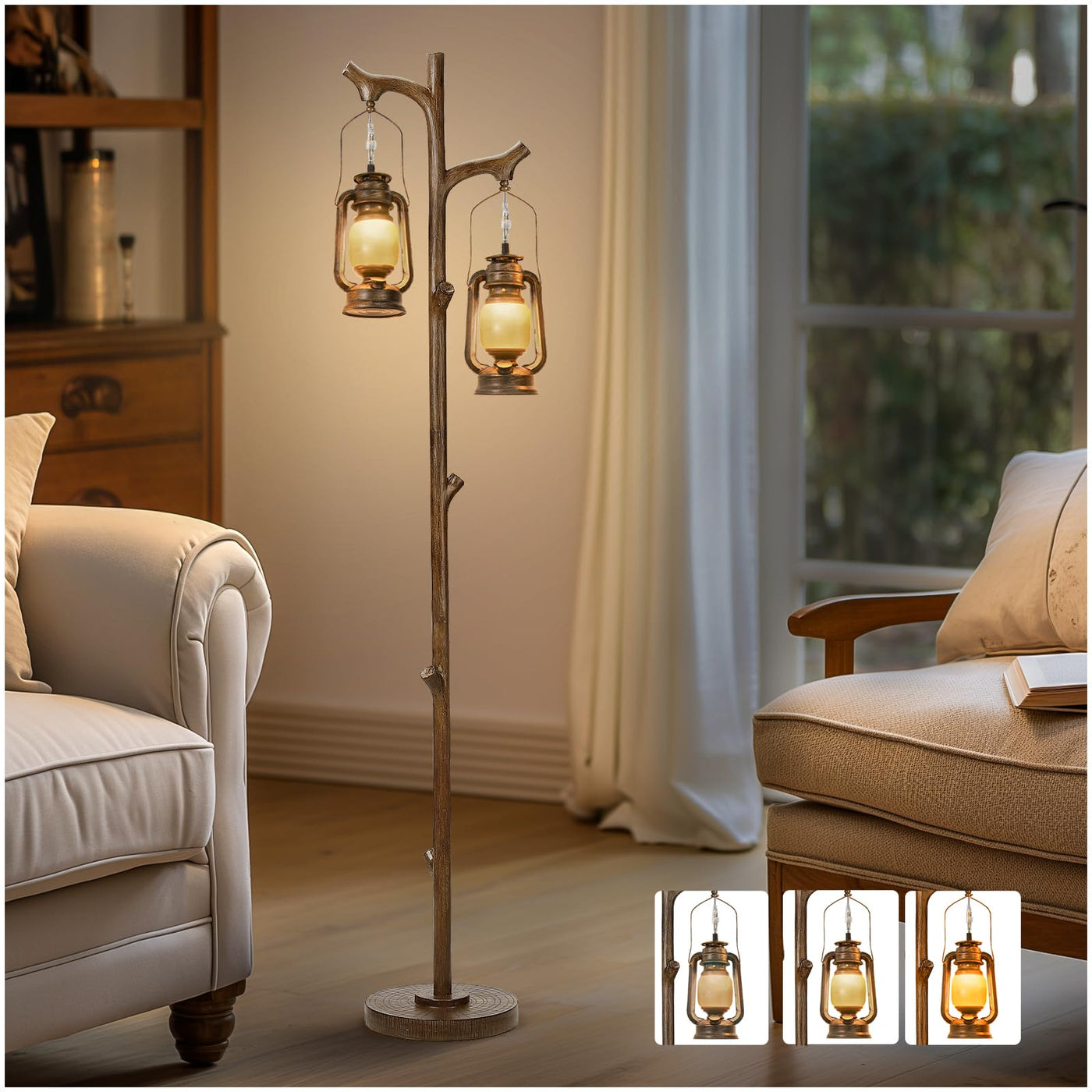 Q: What type of bulbs are compatible with the Rustic Farmhouse Tree Trunk Floor Lamp?A: The Rustic Farmhouse Tree Trunk Floor Lamp is designed with two E26 lamp holders, making it compatible with standard E26 bulbs. We also include two 6-watt bulbs for your convenience, ensuring you have everything you need right out of the box.