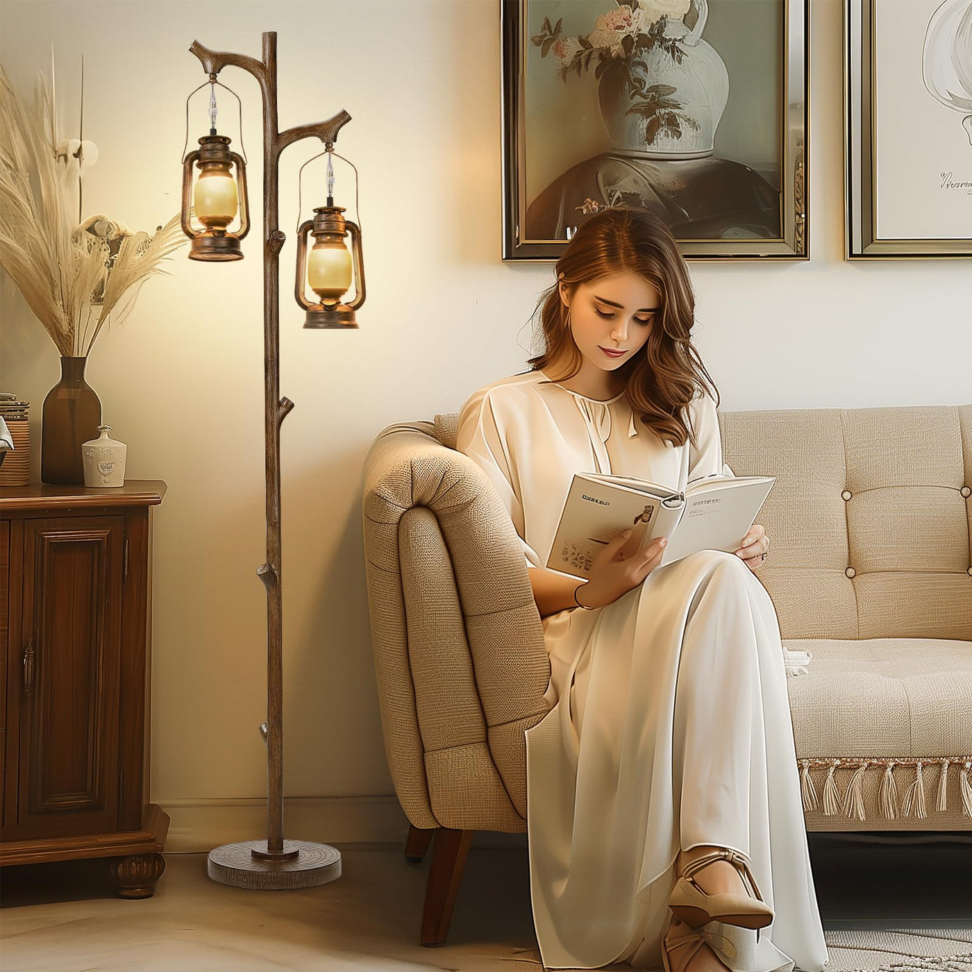 Q: Can this lamp be used in commercial spaces like cafes and hotels?A: Absolutely! The Rustic Farmhouse Tree Trunk Floor Lamp is versatile and suitable for various environments, including living rooms, bedrooms, offices, cafes, clubs, and hotels. Its unique design and warm lighting create a welcoming atmosphere in any commercial setting.