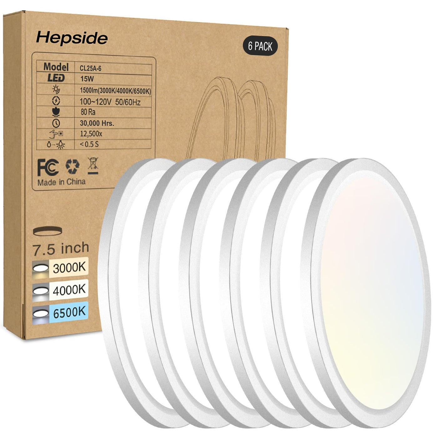 Equipped With 100 Powerful Leds, Using High Quality Of Fire-Resistance Plastic, Hepside Led Ceiling Light Can Provide A Super Bright Illuminance For A Wide Area.If You Want To Make Your Home Life More Stylish And Brighter, Hepside Low Profile Ceiling Light Can Provide You With The Answer... Hepside Stylish Led Ceiling Light With Ultra-Thin Design Is Multi-Functional And Energy Saving. A High-Quality Fire-Resistant Plastic Enclosure Protects Against Any Potential Disaster. 3 Optional Color Temperatures To Meet Your Daily Needs. High-Performance Design Saves Up To 90% Of Your Home Electricity Bill. High Cri >85, Provide Vivid And Natural Lighting In Your Room. Easy To Install + Super Bright + Eye Protection Specifications: Voltage: Ac100-120V Power: 15W (Equal 100W Incandescent) Lumen: 1600Lm Cri: >85 Light Beam Angle: 120? Lifespan: 25000 Hours Material: Pc Product Diameter/Thickness:7.5*0.94Inch Waterproof & Dustproof: Yes