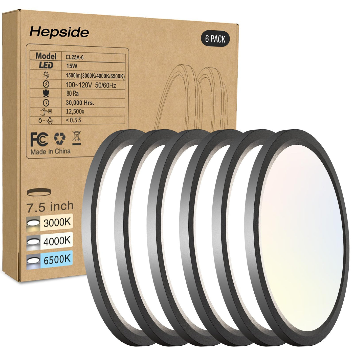'Equipped With 100 Powerful Leds, Using High Quality Of Fire-Resistance Plastic, Hepside Led Ceiling Light Can Provide A Super Bright Illuminance For A Wide Area.If You Want To Make Your Home Life More Stylish And Brighter, Hepside Low Profile Ceiling Light Can Provide You With The Answer... Hepside Stylish Led Ceiling Light With Ultra-Thin Design Is Multi-Functional And Energy Saving. A High-Quality Fire-Resistant Plastic Enclosure Protects Against Any Potential Disaster. 3 Optional Color Temperatures To Meet Your Daily Needs. High-Performance Design Saves Up To 90% Of Your Home Electricity Bill. High Cri >85, Provide Vivid And Natural Lighting In Your Room. Easy To Install + Super Bright + Eye Protection Specifications: Voltage: Ac100-120V Power: 15W (Equal 100W Incandescent) Lumen: 1600Lm Cri: >85 Light Beam Angle: 120? Lifespan: 25000 Hours Material: Pc Product Diameter/Thickness:7.5*0.94Inch Waterproof & Dustproof: Yes Packing Lists: 6 X 15W Led Ceiling Light 6 Xconnector 18 X Screws 1 X User Manual Color Adjustable The Color Modes Between: 3000K-4000K-6500K Warm Tips For Led Ceiling Lights : Please Confirm The Relevant Parameter Before Purchase To Ensure The Lamp Is Suitable For You. Make Sure To Cut Off The Power Source Before Installation. Clean With A Slightly Wet And Soft Cloth. Please Do Not Use Any Cleaning Or Abrasive Solutions.''