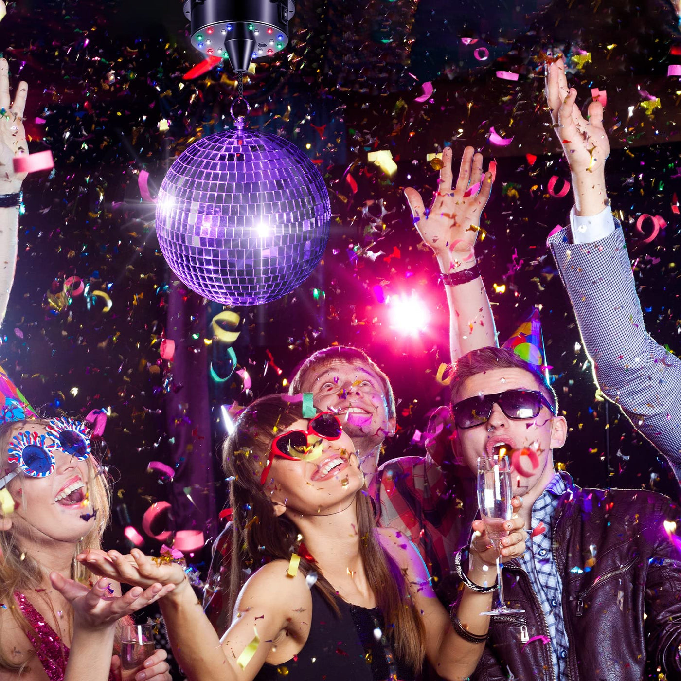Q: How do I install the disco ball motor?A: The disco ball motor features a chain and key ring for easy installation. You can mount it to the ceiling using screws (not included), allowing you to securely attach your mirror ball.