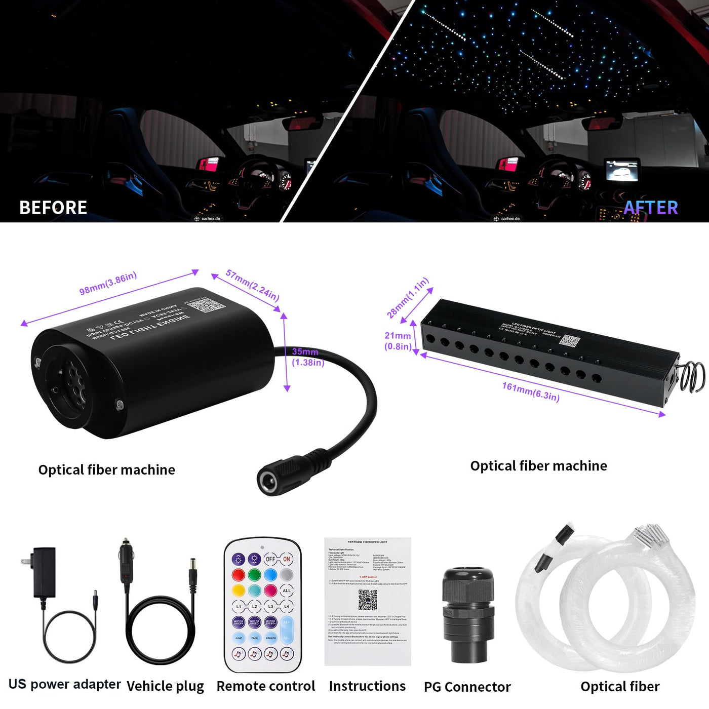 6W Small Size Fiber Optic Starlight Headliner Kit, 500pcs*0.03in*13.1ft, Shooting Stars + Twinkle + Sound-Activated APP& Remote Control Starlight Engine for Car Home
