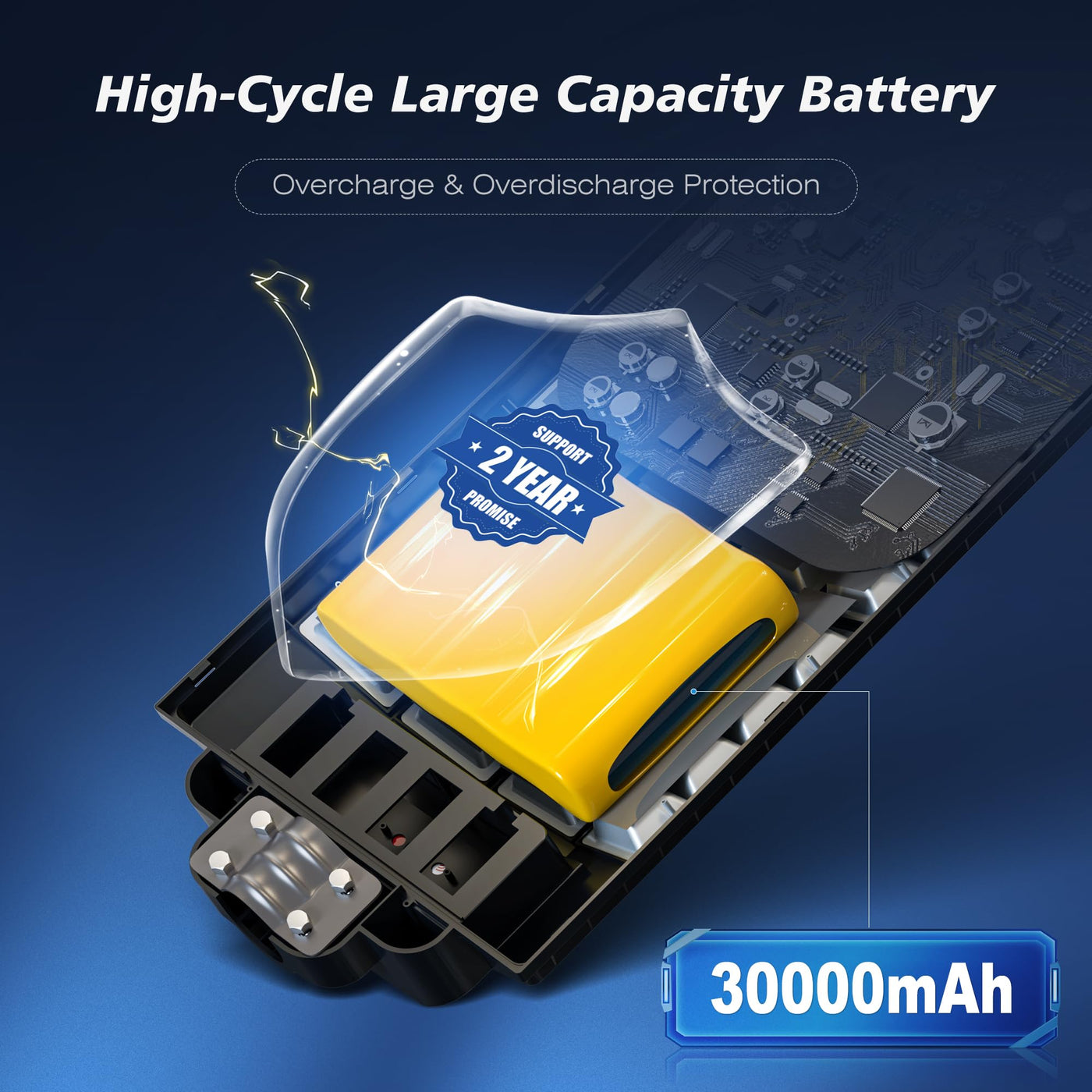 Q: How long does the battery last on a full charge?A: With a 3.2v-30000mah large-capacity battery, the 8000W Solar Street Light can provide illumination for 8-10 hours on a full charge, making it perfect for all-night lighting.
