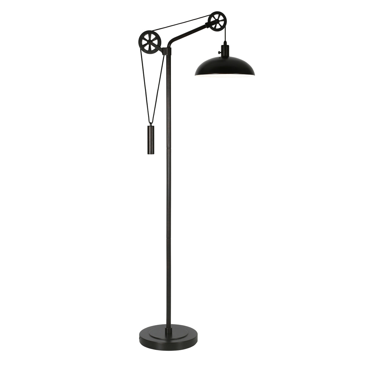 Embrace the good life with this hard working and stylish 72-inch black adjustable reading floor lamp with black metal dome shade. The base of this lamp is made of metal finished in a black tone and the shade is the same. A unique pulley system allows you to adjust the height of the lamp to your desired needs. Next to your desk or favorite chair this single base task/reading lamp is designed to make your work or activities easier with concentrated light in just the space you need it. 72-inch H x 25-inch W x 13-inch D