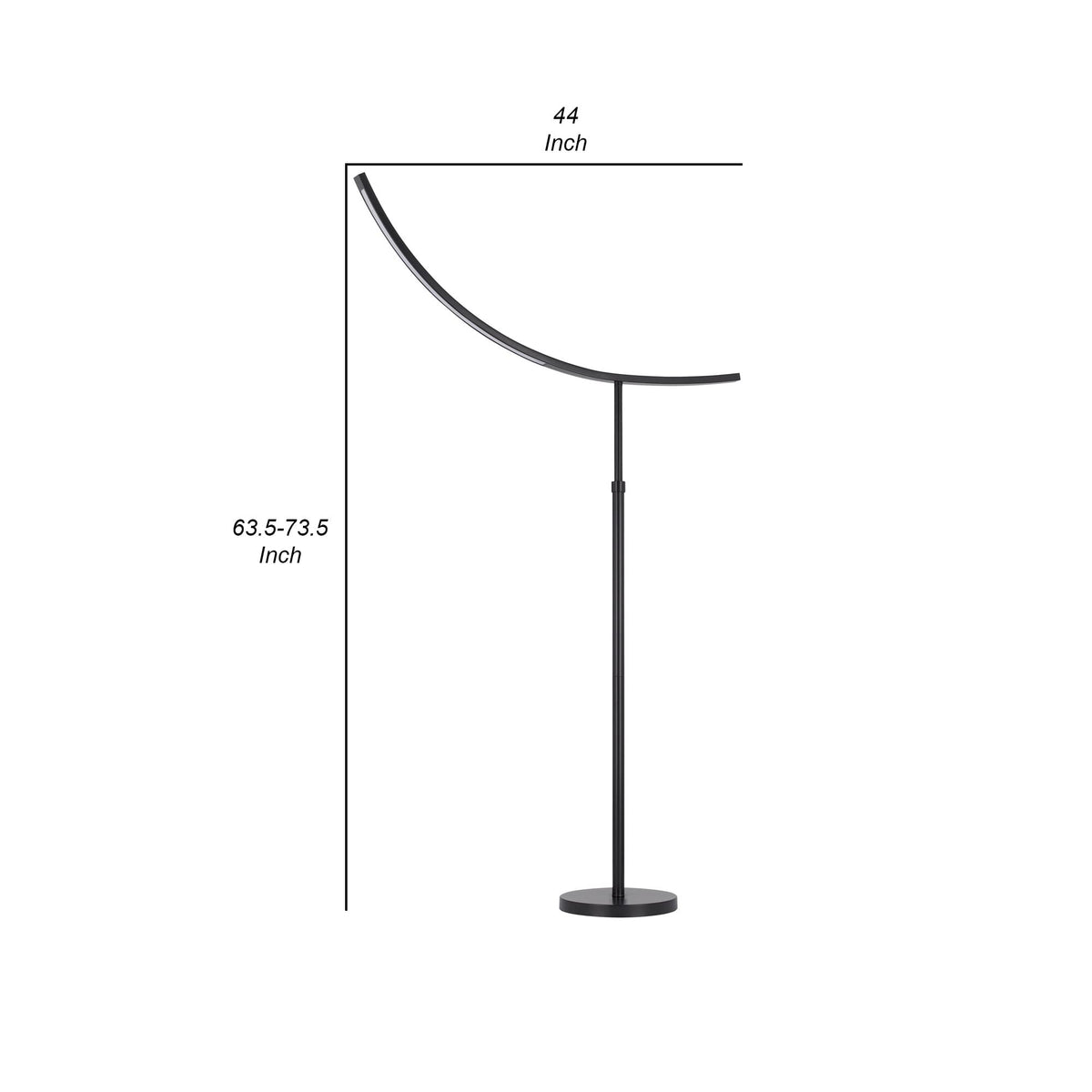 BM280519 74 Inch Adjustable Floor Lamp, LED Light, Inverted Metal Base, Dark Bronze Bring a sense of modernistic style to your living room, foyer, hall, or bedroom with this gorgeously modern floor lamp. Featuring a metal base in a dark bronze finish, adjustable height, and an integrated LED light, this is a versatile, unique, and multifaceted addition to any contemporary interior setting. One adjustable floor lamp Curved shade with integrated LED light