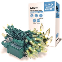 Q: What is the twinkling effect of the 75 LED Soft Twinkle Lights?A: The 75 LED Soft Twinkle Lights feature a slow twinkling effect that creates a cozy and calm atmosphere. This gentle, gradual twinkling adds a magical touch to both indoor and outdoor decor.