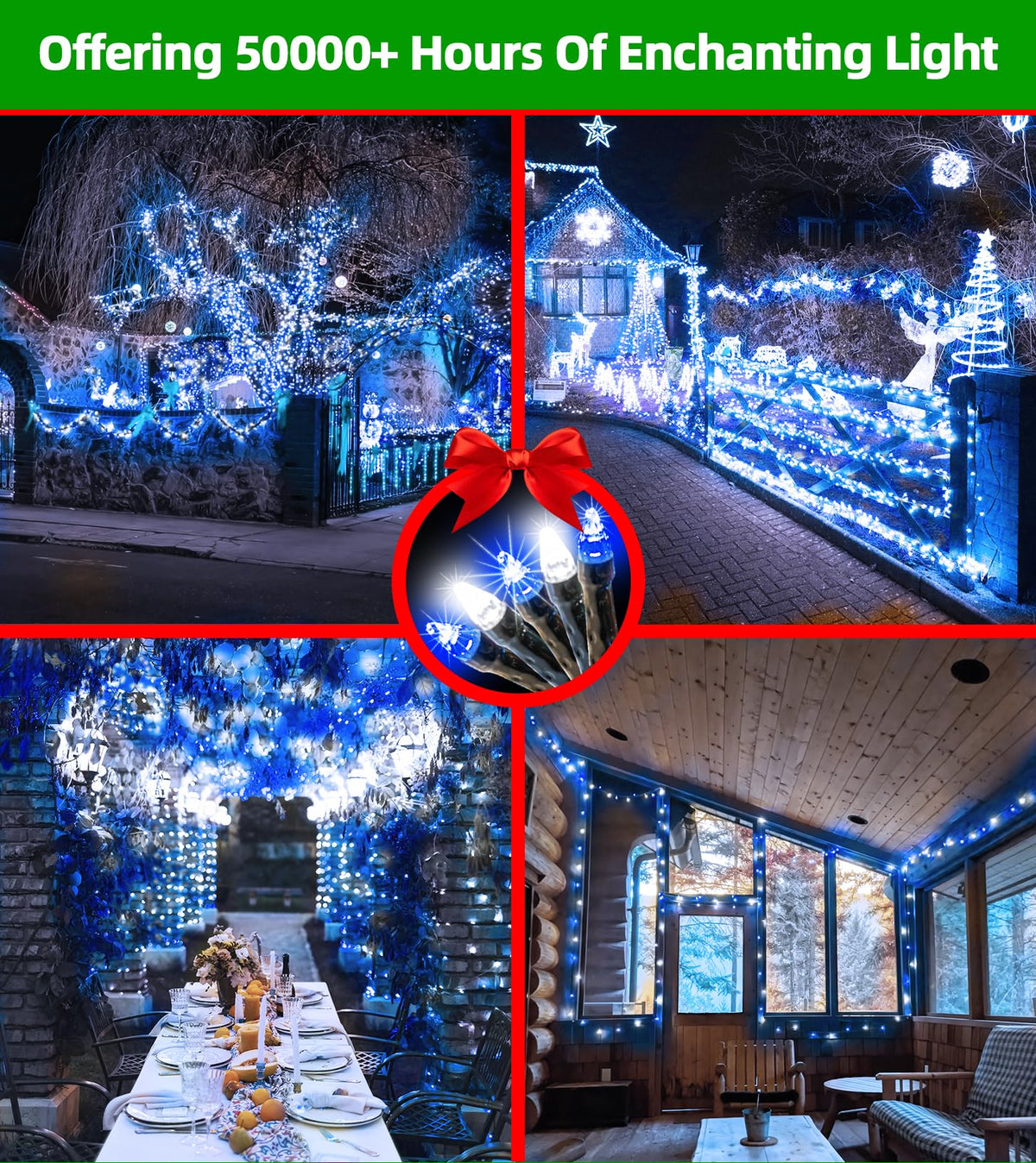 750 Led 240Ft Christmas Lights Outdoor 12 Lighting Modes Christmas String Lights With Timer Dimmable Blue Cool White Led Stringlights Waterproof For Yard Wedding Party Holiday Decor Blue&Coolwhite