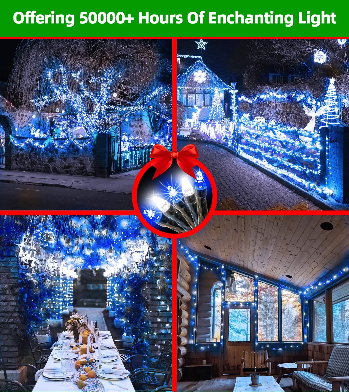 Perfect For Large Homes: Tired Of Connecting Multiple Strands? This 240Ft 750 Led Cool White And Blue Outdoor Christmas String Lights On Dark Green Wire Is Long Enough To Wrap Your Garage, Windows, Roofline, Porches, And Even 15–20Ft Christmas Trees. One Continuous Strand Creates An Icy, Dazzling Winter Wonderland Effect That Makes Your Home Shine With Frosty Elegance.