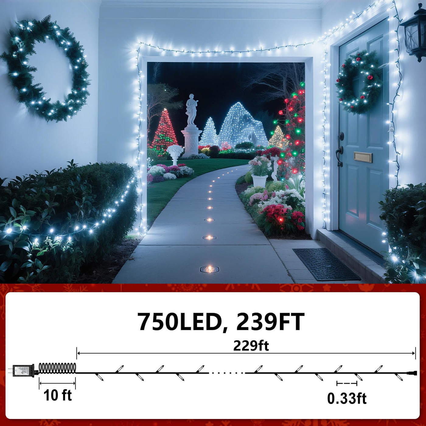 750 Led 240Ft Christmas String Lights Outdoor With 12 Lighting Modes Green Wire Christmas Lights With Timer & Dimmable Waterproof Plug In Fairy Lights For Room Party Home Patio Xmas Cool White