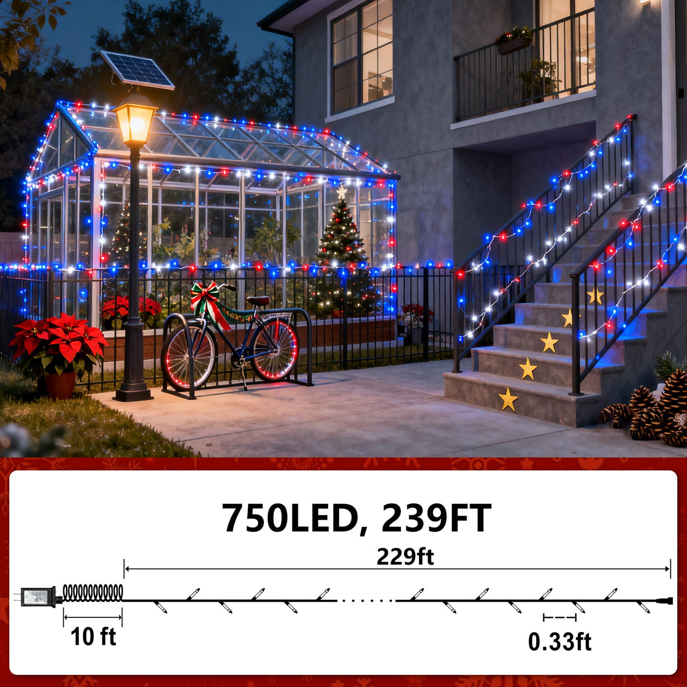 750 Led 240Ft Christmas String Lights Outdoor With 12 Lighting Modes Green Wire Christmas Lights With Timer & Dimmable Waterproof Plug In Fairy Lights For Room Party Home Xmas Red White & Blue