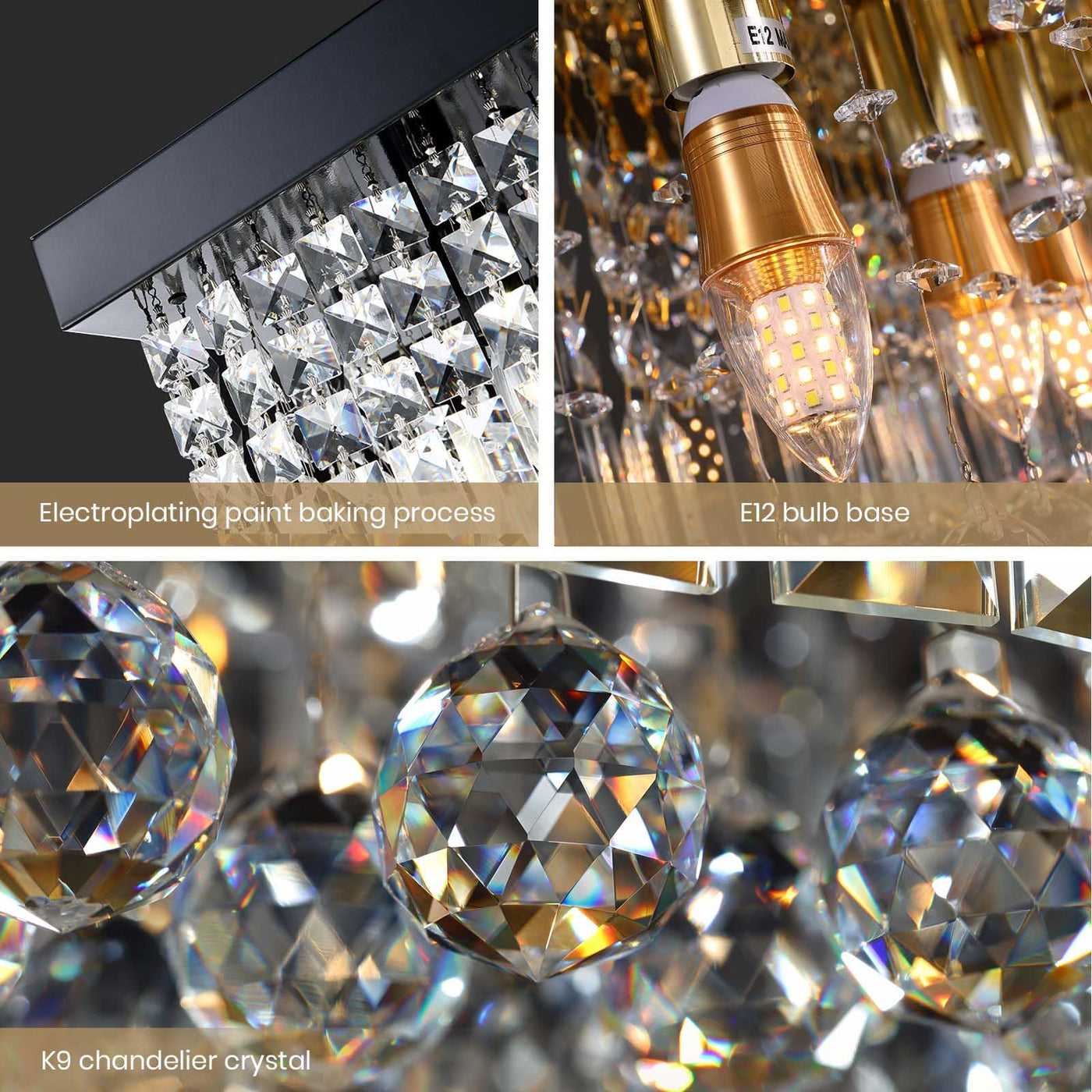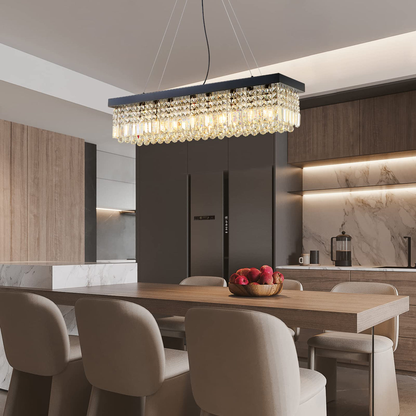 - **Elegant Design**: Crafted with top-quality K9 crystal, this chandelier features a sleek black finish that complements various decor styles. The rectangular shape and shimmering crystals create a captivating focal point in your dining room, living room, or kitchen island.