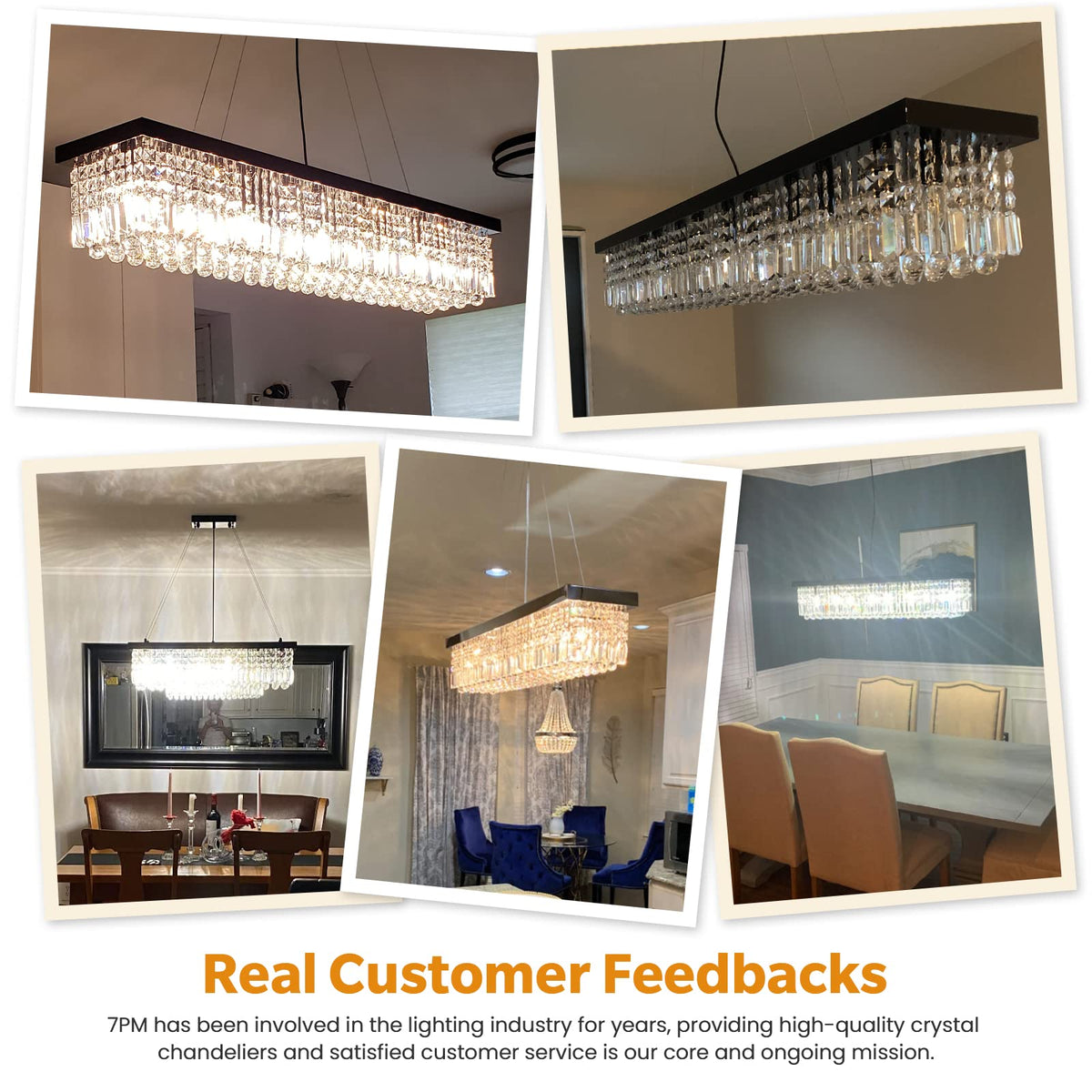 Q: Is the chandelier suitable for commercial use?A: Yes, the 7PM Rectangle K9 Crystal Chandelier is designed for both household and commercial applications, making it perfect for dining rooms, kitchens, bars, restaurants, galleries, and offices.
