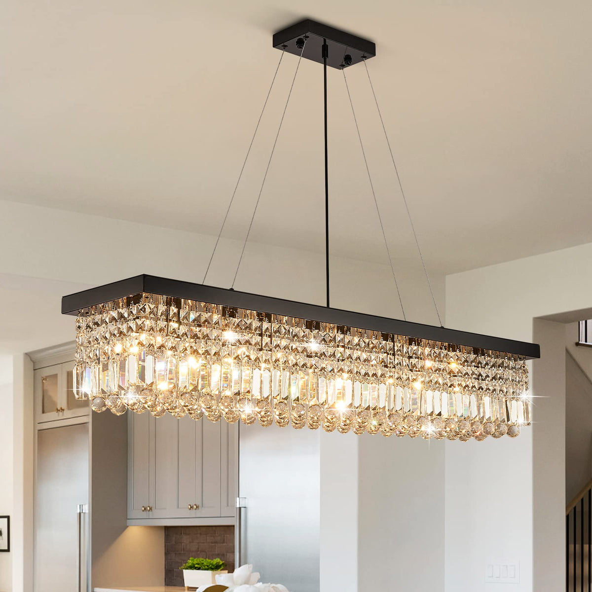 7Pm K9 Crystal Chandelier - Modern Black Rectangular Pendant Light For Dining Room & Kitchen