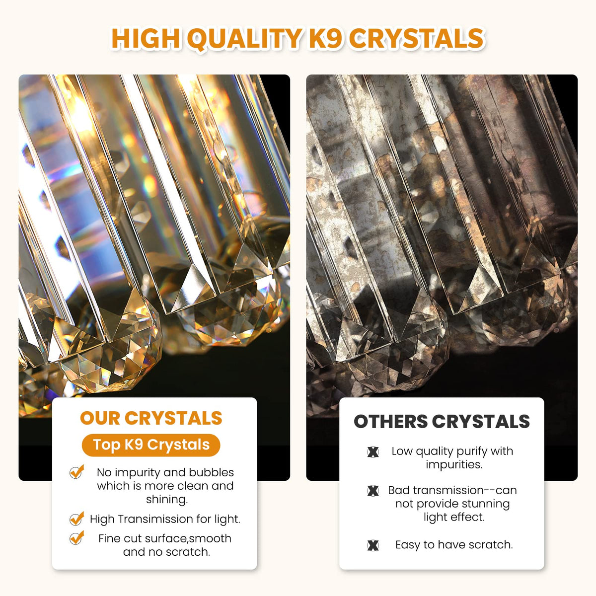 - **Premium Quality Materials**: Crafted from a durable stainless steel frame and a dazzling K9 crystal lampshade, this chandelier is built to last. The high-quality materials ensure a sparkling and brilliant lighting experience that enhances the ambiance of any room.